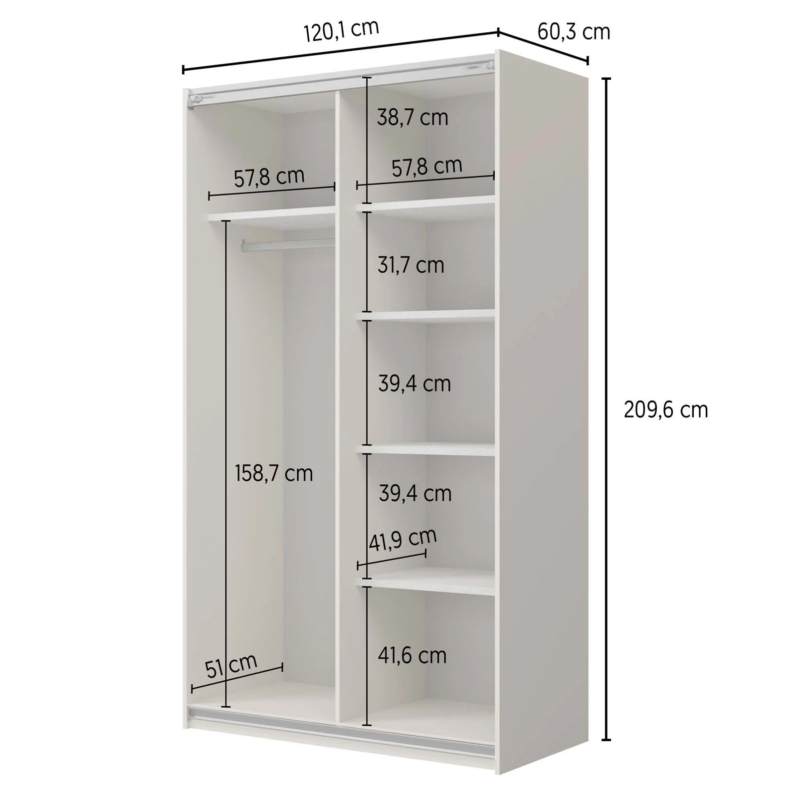 | Dimensioni totali | L.120,1 x H.209,6 x P.60,3 cm |