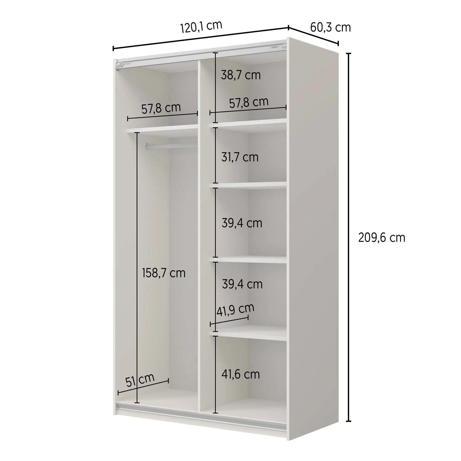 | Dimensioni totali | L.120,1 x H.209,6 x P.60,3 cm |