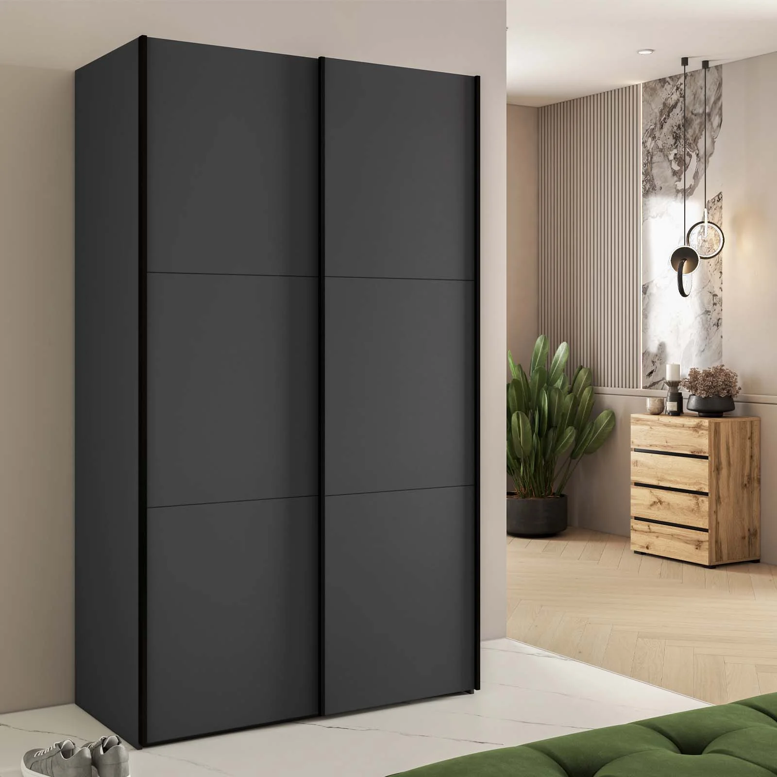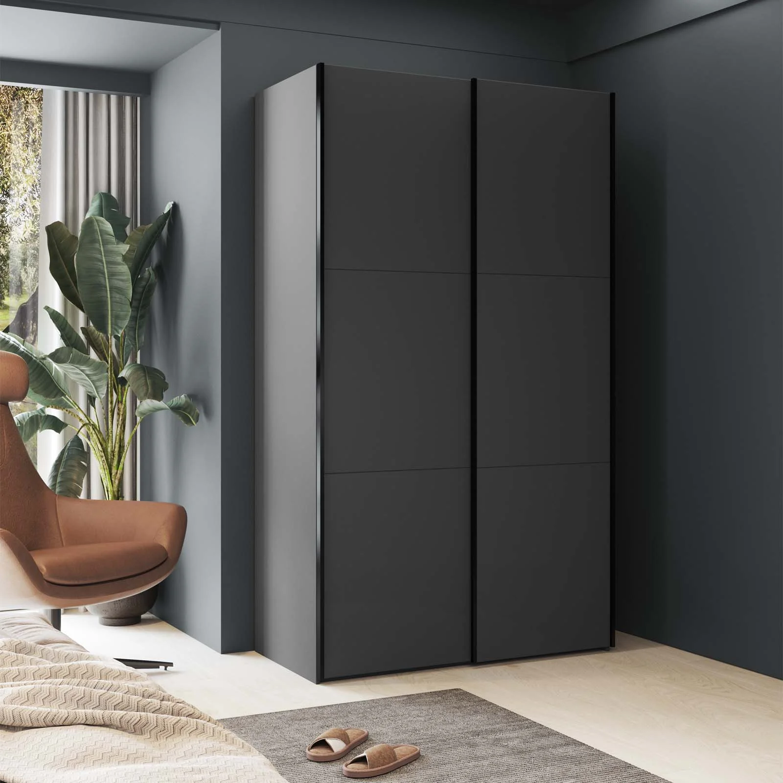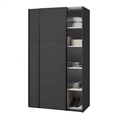 La raffinata finitura nera opaca, impreziosita dai bordi ben definiti, dona eleganza e modernità all’ambiente, rendendo l’armadio protagonista dello spazio e al tempo stesso versatile negli abbinamenti.