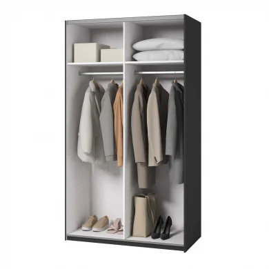 Le 2 ante scorrevoli assicurano praticità e salvaspazio, mentre l’organizzazione interna con 2 ripiani e 4 vani interni con 2 aste appendiabiti, offre tutto lo spazio necessario per mantenere ordine e funzionalità. Due vani, disposti verticalmente, sono perfetti per appendere capi lunghi come cappotti, vestiti e giacche, garantendo una gestione ottimale del guardaroba.