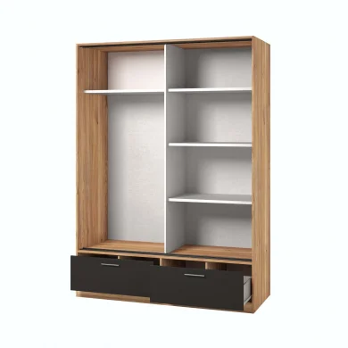All’interno offre 6 vani capienti e un’asta appendiabiti metallica, ideali per organizzare i tuoi capi con ordine e cura. I 2 cassetti integrati aggiungono ulteriore spazio utile per biancheria e accessori, rendendo l’armadio un vero alleato nella quotidianità.