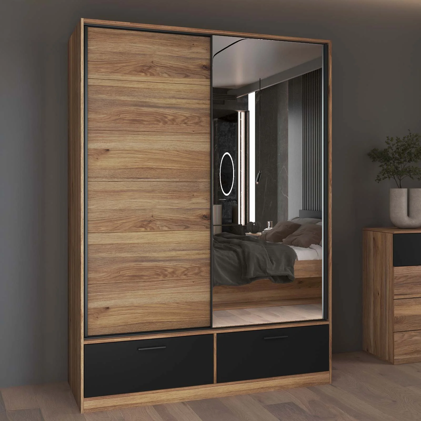 Armadio 150x209h cm 2 ante scorrevoli con specchio 2 cassetti rovere nero Yve Compatto ma estremamente funzionale, l’armadio Yve è la soluzione perfetta per chi cerca unire design moderno e... continua a leggere