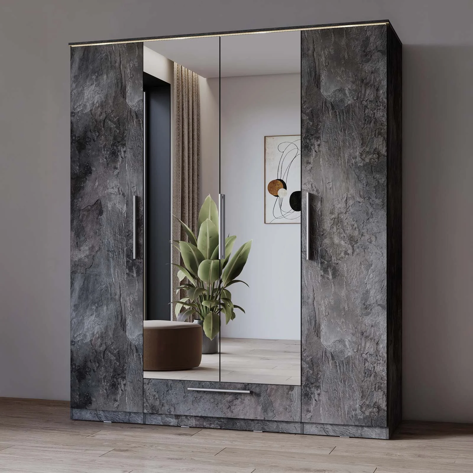 Armadio 181x215h cm 4 ante 1 cassetto con specchio ossido effetto pietra Frisk Compatto nelle dimensioni ma generoso nella capienza, l’armadio Frisk è la scelta ideale per chi cerca un arredo funzionale... continua a leggere