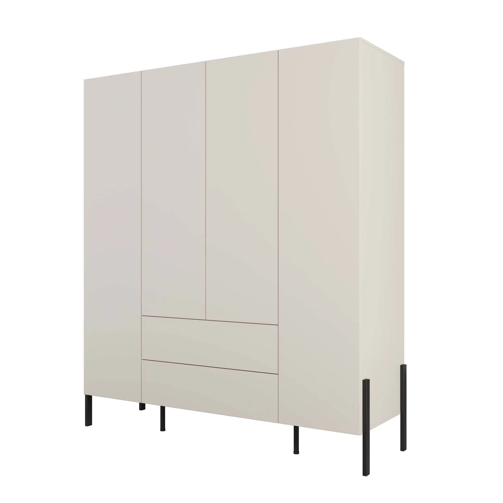 La finitura beige cashmere regala al mobile una luminosità elegante e senza tempo, facilmente abbinabile a qualsiasi palette di colori. Le gambe in metallo nero opaco completano il design con un contrasto raffinato, aggiungendo stabilità e carattere contemporaneo.