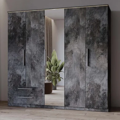 Armadio 225x215h cm 5 ante 2 cassetti con specchio ossido effetto pietra Frisk Imponente, moderno e funzionale: l’armadio Frisk diventa il cuore della tua camera da letto. La finitura ossido effetto pietra dona... continua a leggere