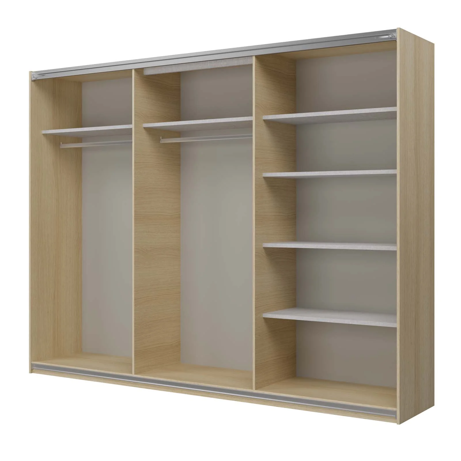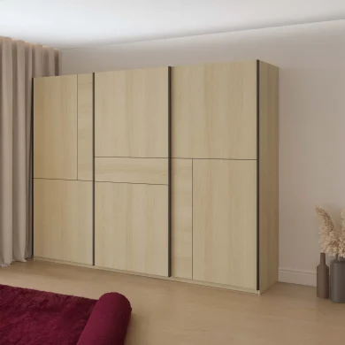 All’interno, la struttura offre un’organizzazione impeccabile grazie ai 9 vani e 6 ripiani, ideali per riporre abiti, biancheria e accessori in modo funzionale e ordinato. La finitura rovere illumina la stanza e regala un’atmosfera calda e accogliente.