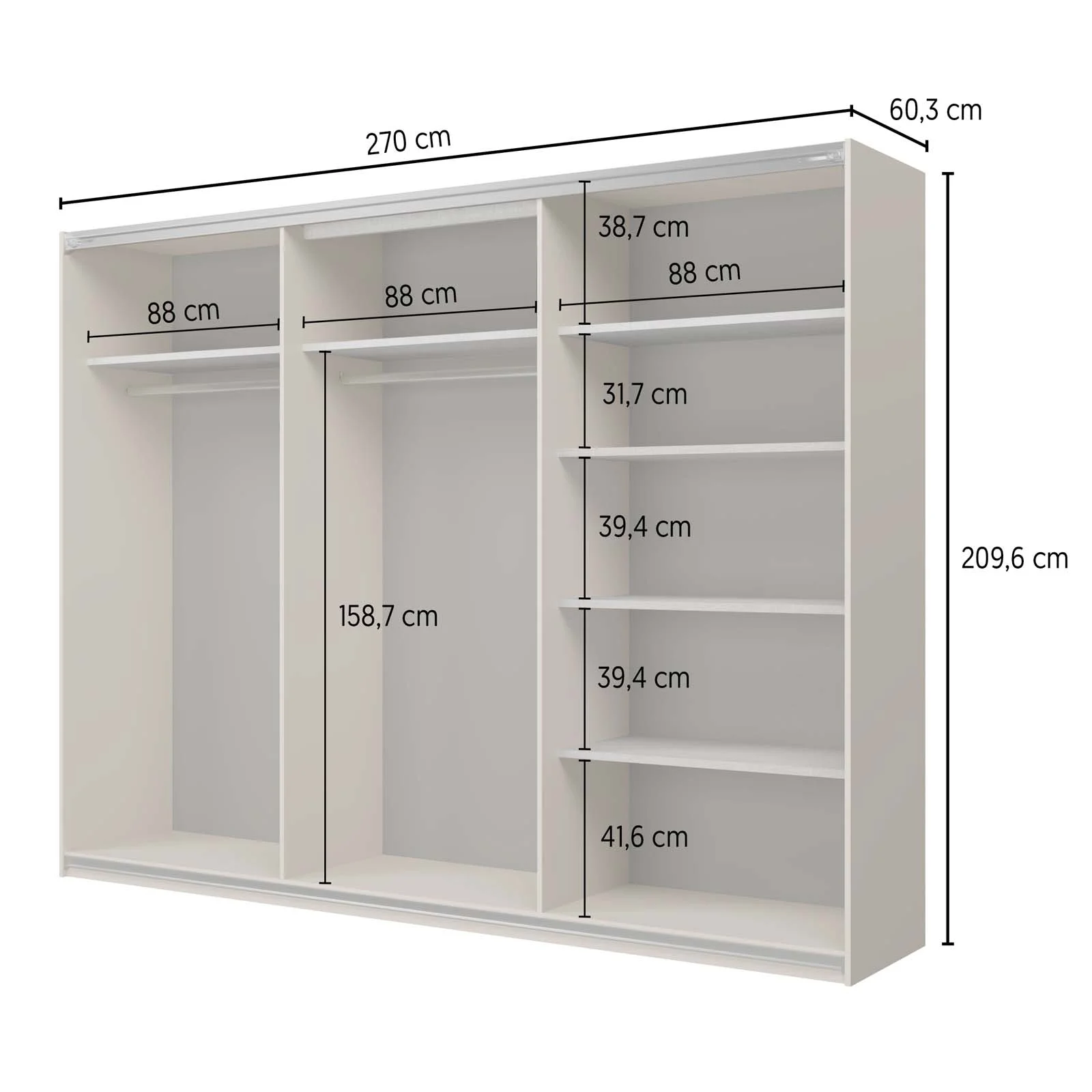 | Dimensioni totali | L.270 x H.209,6 x P.60,3 cm |