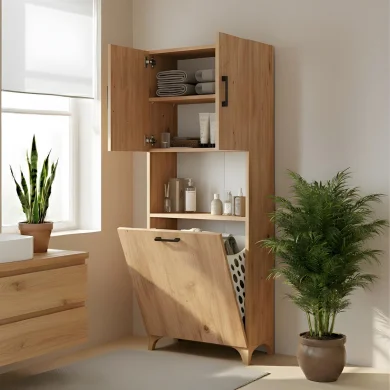 Funzionale ed elegante, il mobile multiuso della collezione Klara in finitura rovere è la soluzione ideale per mantenere ordine e stile in bagno, lavanderia o in altri ambienti della casa.