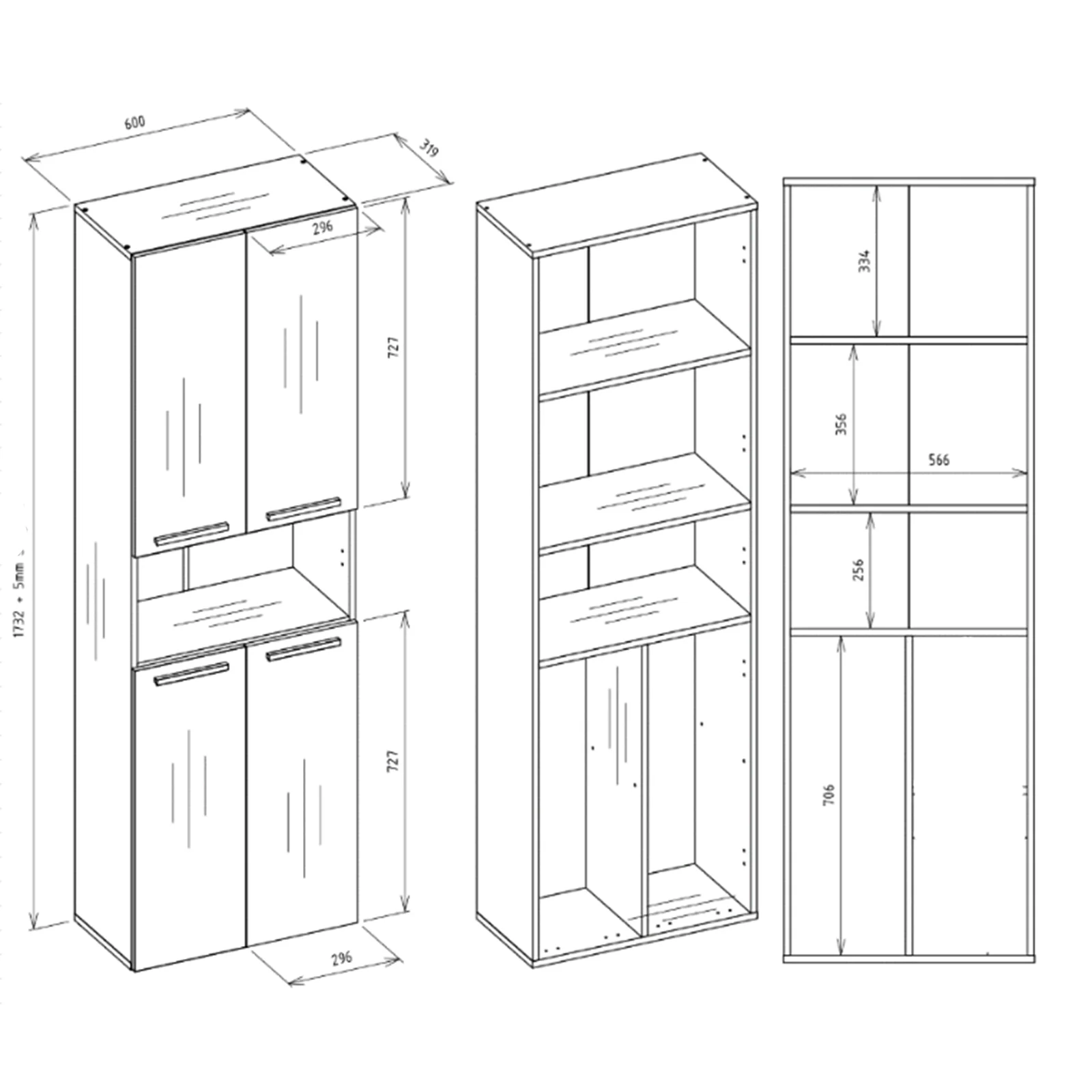 | Dimensioni totali | L.60 x H.174 x P.30 cm |
