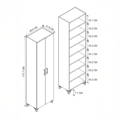 La struttura in pannello nobilitato melaminico assicura solidità e resistenza nel tempo, mentre le cerniere metalliche garantiscono un’apertura fluida e duratura. Al suo interno, gli 8 ripiani offrono ampio spazio per tenere in ordine detersivi, asciugamani, stoviglie o oggetti di uso quotidiano.