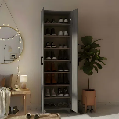 Armadio scarpiera 49x178h cm multifunzione 2 ante antracite Dama Linee essenziali e funzionalità si incontrano nell’armadio multiuso della collezione Dama, a 2 ante e finitura antracite. Una soluzione... continua a leggere