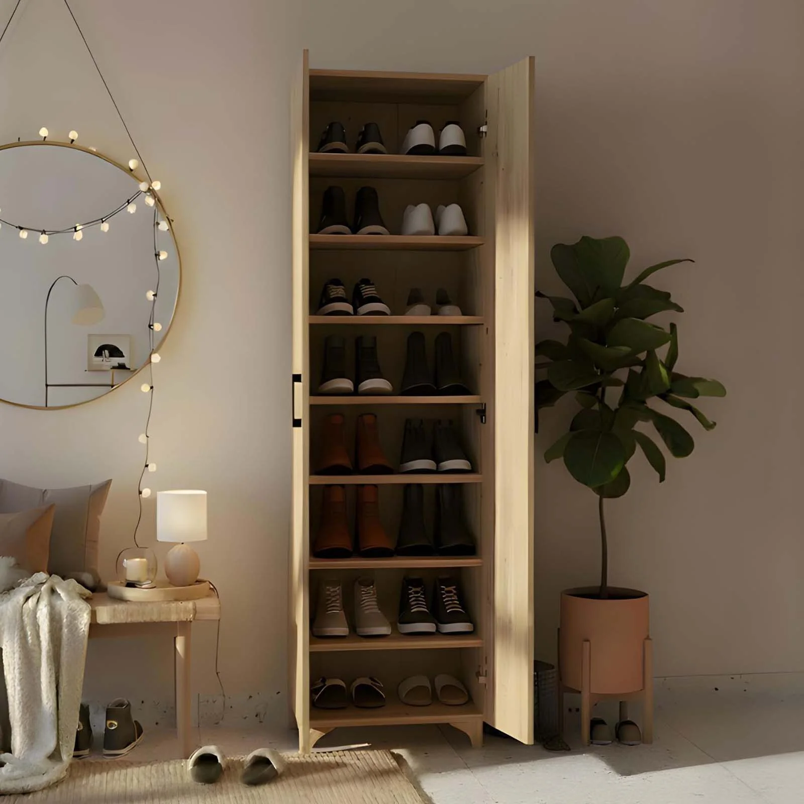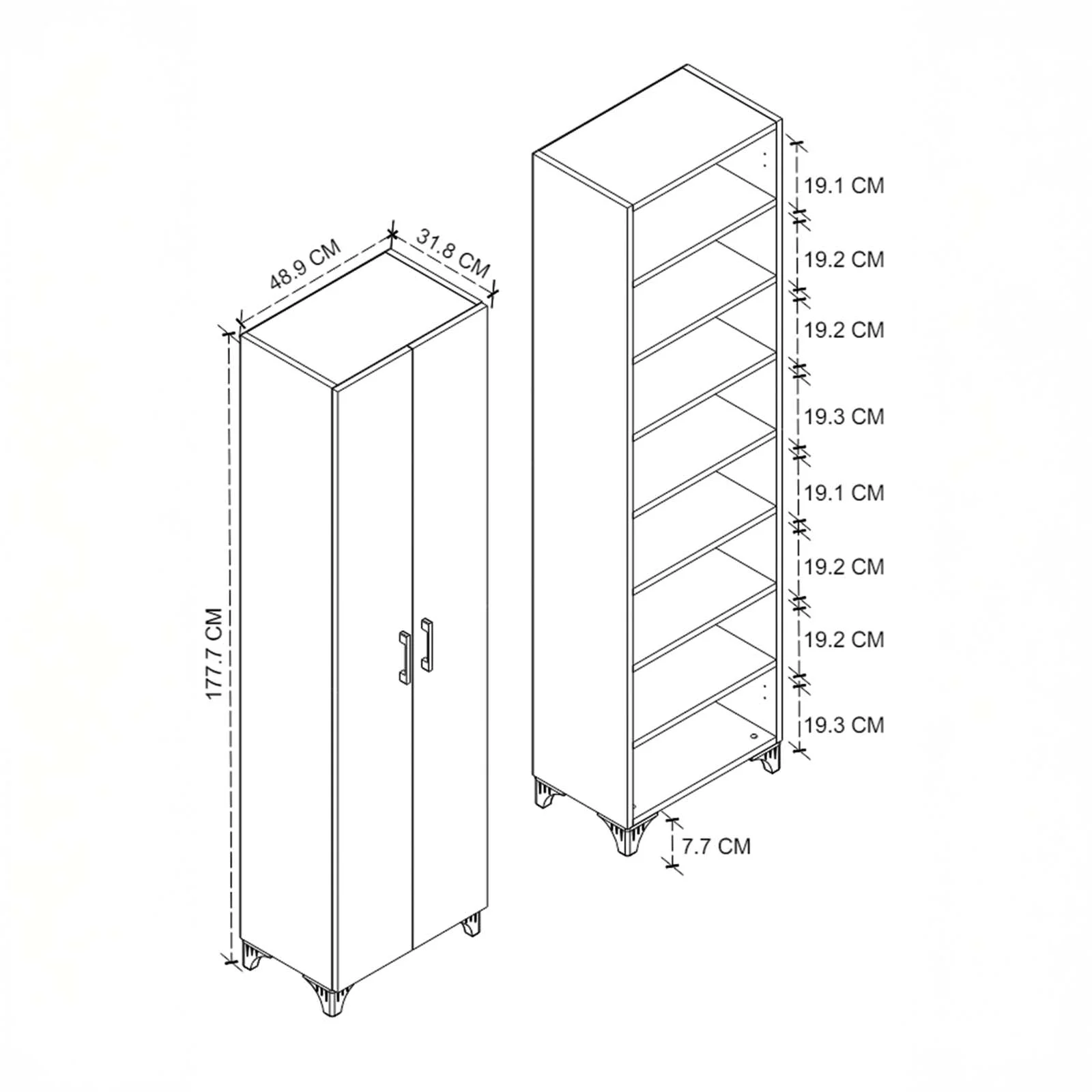 La struttura in pannello nobilitato melaminico assicura solidità e resistenza nel tempo, mentre le cerniere metalliche garantiscono un’apertura fluida e duratura. Al suo interno, gli 8 ripiani offrono ampio spazio per tenere in ordine detersivi, asciugamani, stoviglie o oggetti di uso quotidiano.