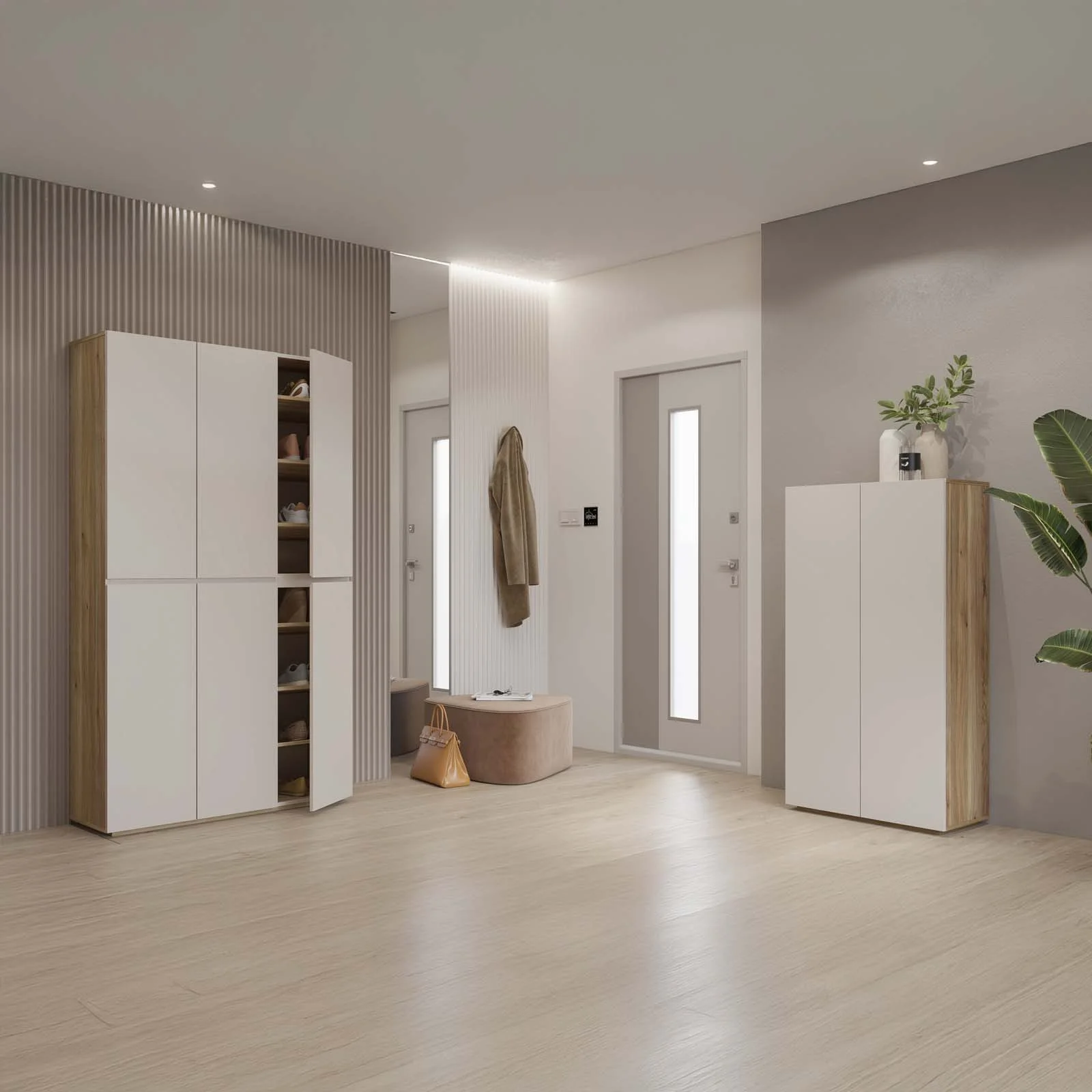 Elegante, salvaspazio e perfetta per mantenere le calzature in ordine: l'armadio scarpiera Delia unisce estetica moderna e funzionalità, ideale per ingresso, disimpegno, camera o cabina armadio.