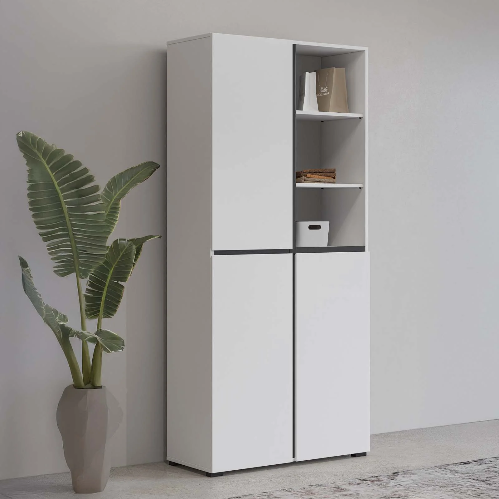 Armadio soggiorno 80x184h cm 3 ante 3 vani a giorno bianco Lolla Funzionalità e design contemporaneo si incontrano nel nuovo armadio della collezione Lolla. Un complemento d’arredo compatto ma... continua a leggere