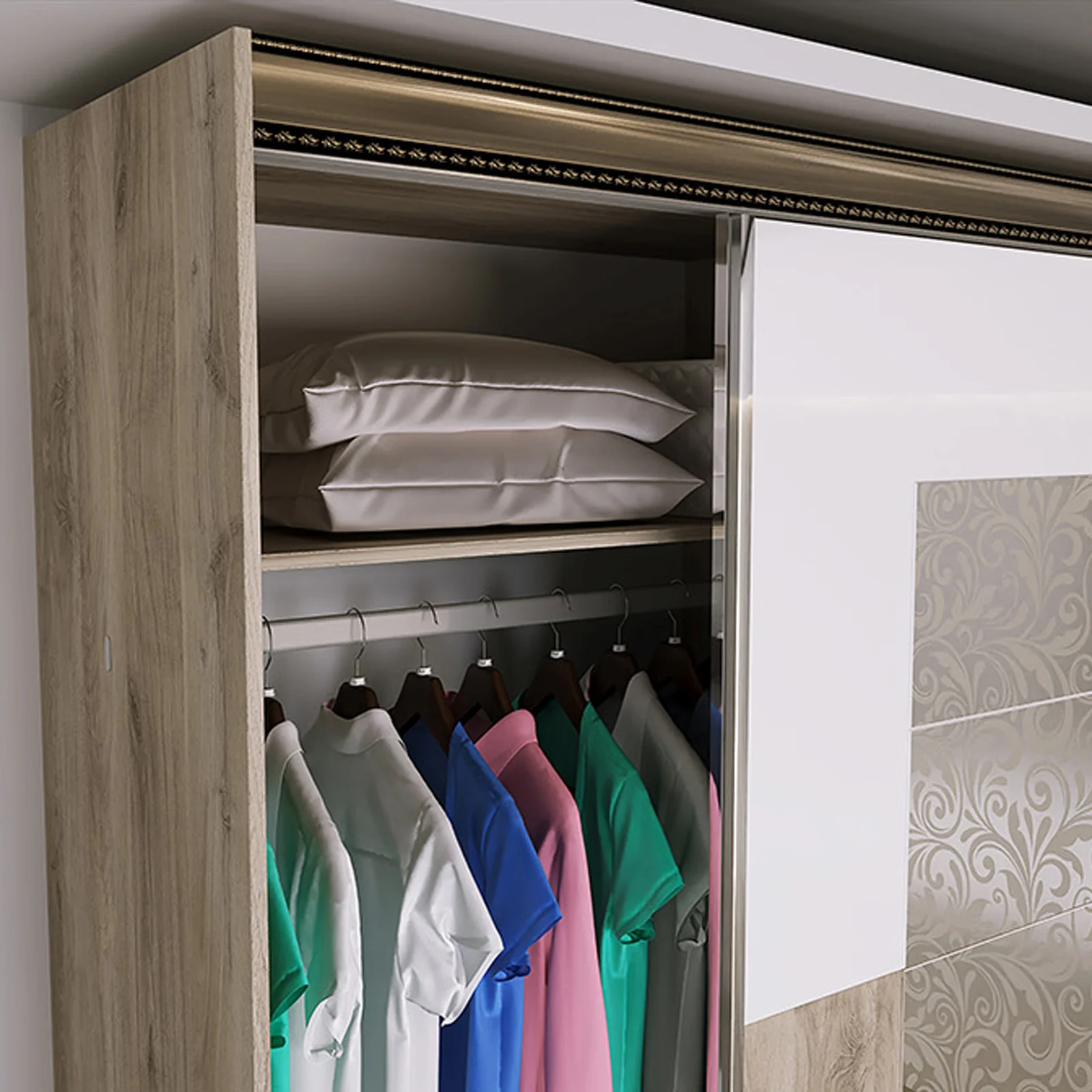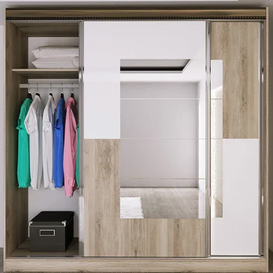 un armadio con ante scorrevoli specchiate, ampio e capiente, che riflette la luce e amplia visivamente lo spazio.