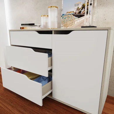 Realizzata nelle finiture rovere sonoma e bianco opaco, con inserti oro, Riga crea un perfetto equilibrio tra calore e luminosità, donando carattere a qualsiasi ambiente.