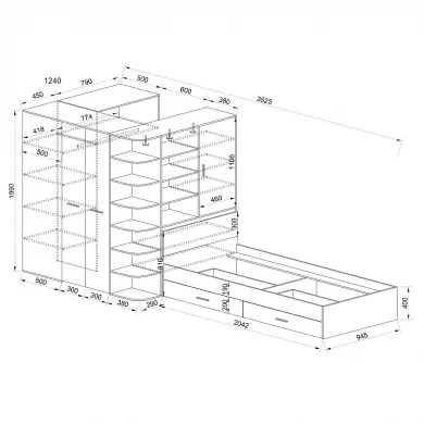 | Altre caratteristiche | Letto con 2 cassettoni dotati di rotelle/Il letto può essere staccato dalla cabina armadio, ha una sua testiera |