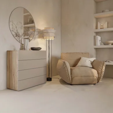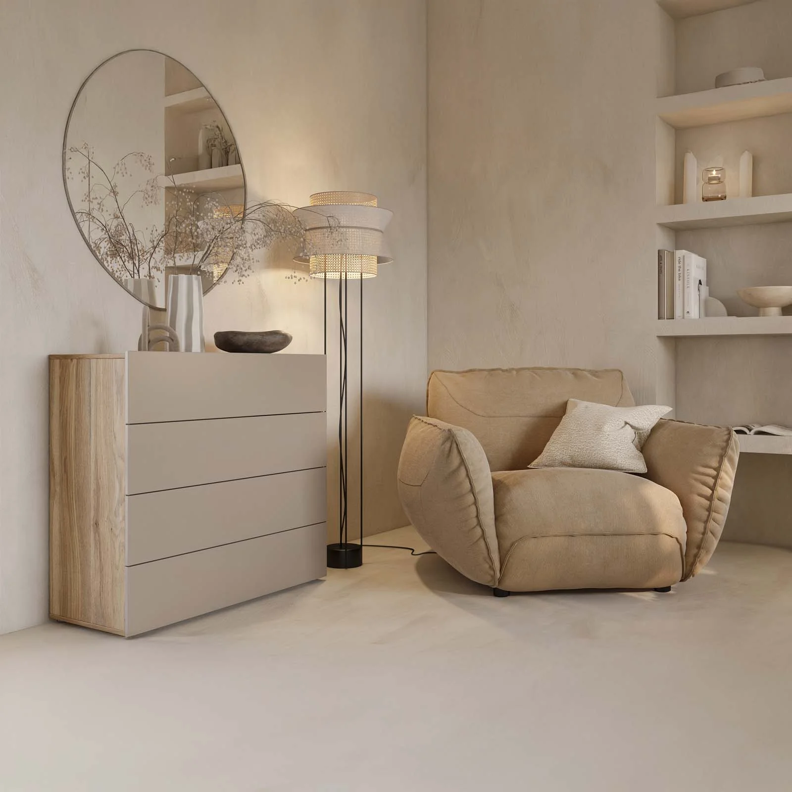 Design moderno e grande funzionalità si incontrano nella cassettiera Lise, un complemento ideale per arredare la camera da letto con stile. La combinazione di rovere naturale e tortora elegante dona calore e raffinatezza, creando un’atmosfera accogliente e contemporanea.