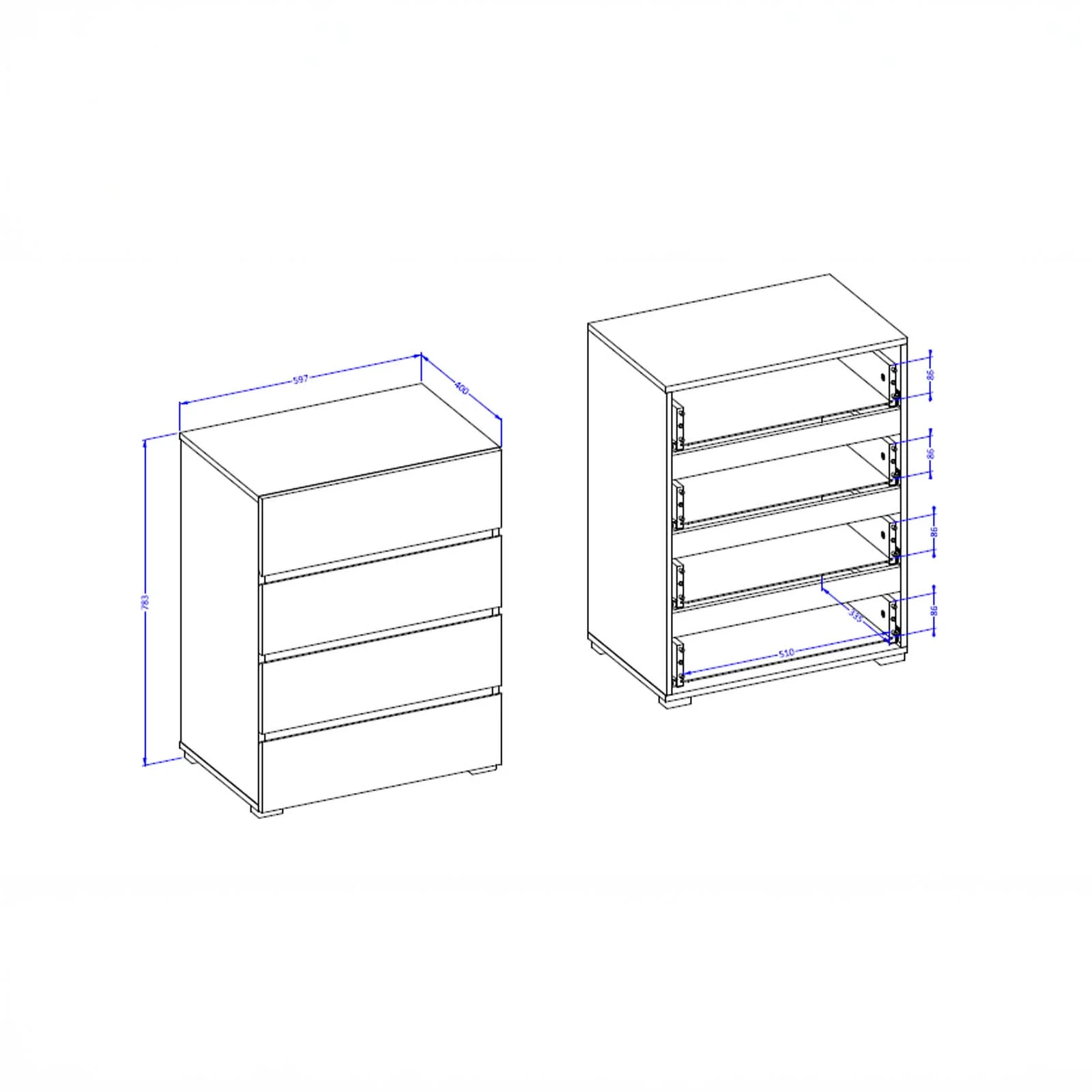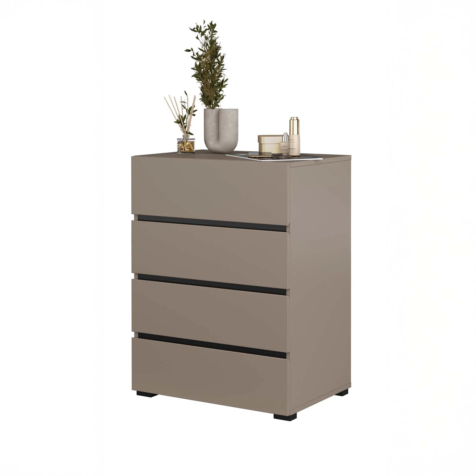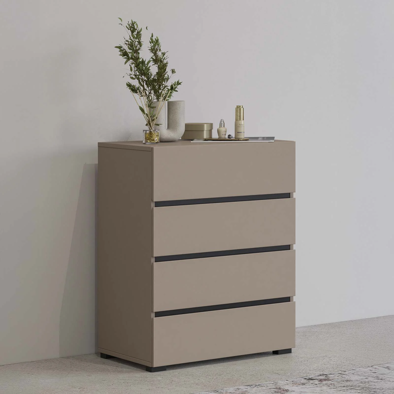 La cassettiera della collezione Lolla è il complemento ideale per chi cerca ordine e funzionalità in un design moderno. Con le sue dimensioni compatte, offre 4 ampi cassetti perfetti per organizzare indumenti, biancheria o accessori, rendendola adatta sia alla camera da letto che agli spazi living.