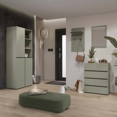 La finitura verde opaco, in contrasto con i dettagli interni neri che caratterizzano la linea, regala freschezza e modernità, creando un ambiente elegante e ricercato.