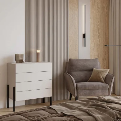 La cassettiera della collezione Simple unisce funzionalità e stile essenziale, diventando un elemento d’arredo elegante e versatile per la zona notte o il soggiorno.
