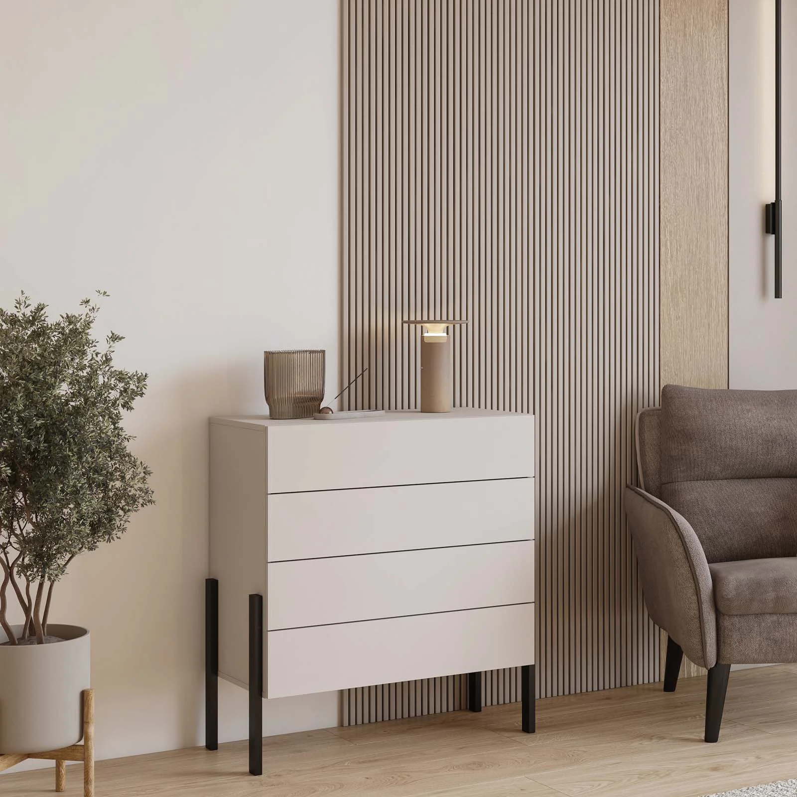 Cassettiera 84x90h cm 4 cassetti beige cashmere Simple La cassettiera della collezione Simple unisce funzionalità e stile essenziale, diventando un elemento d’arredo elegante e versatile per la zona notte... continua a leggere