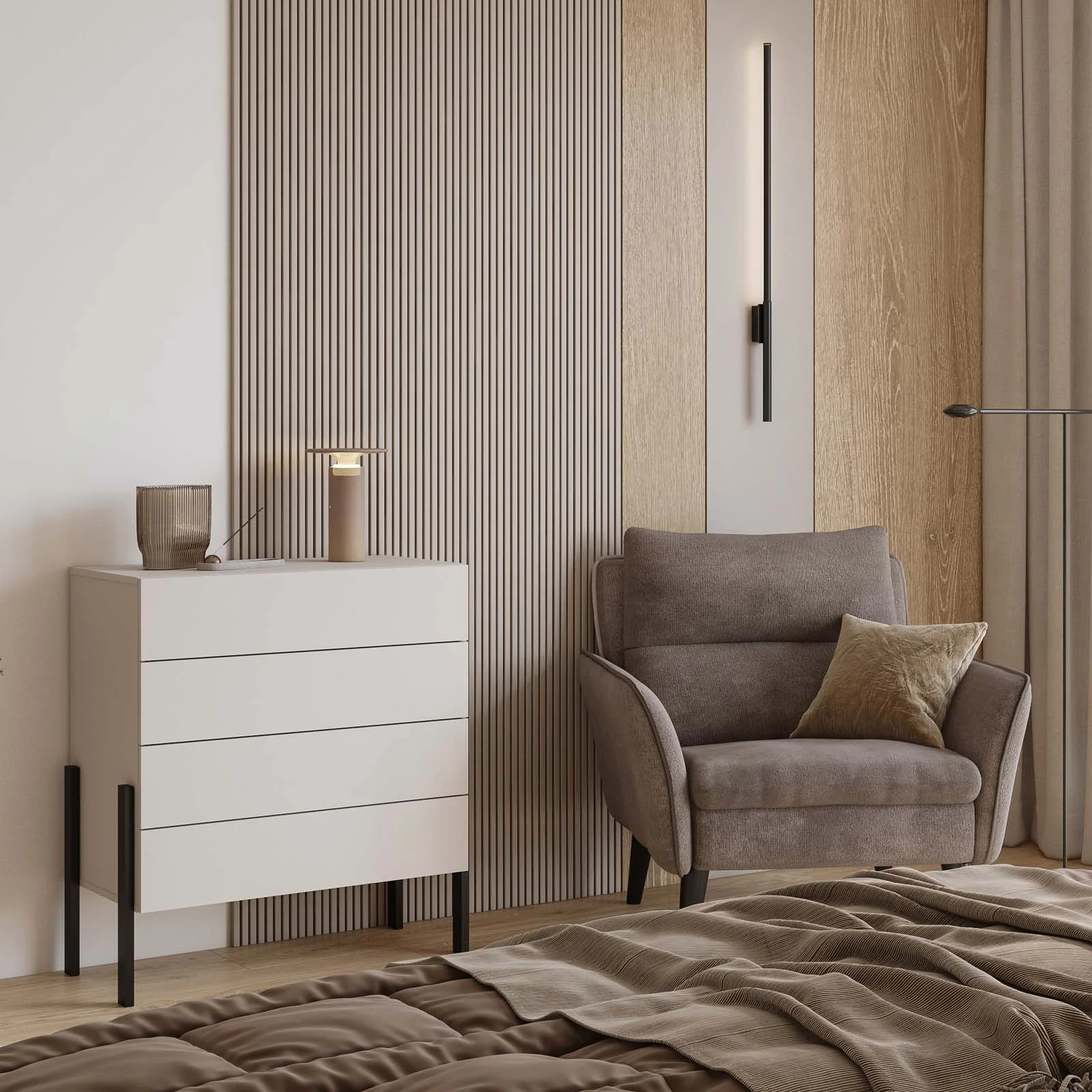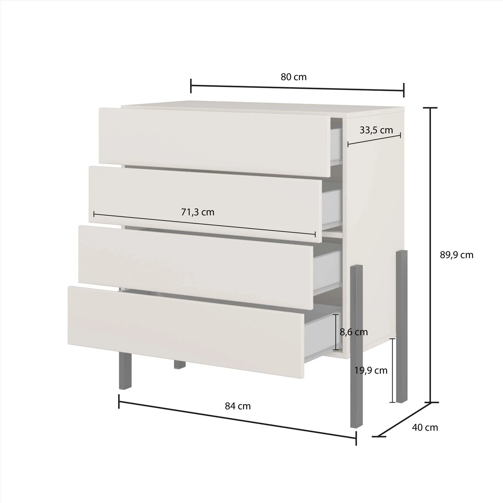 La struttura è composta da 4 ampi cassetti con sistema di apertura push to open, che elimina le maniglie e valorizza la linearità del design. Lo spazio interno è capiente e perfetto per riporre biancheria, abiti o accessori mantenendo sempre ordine e praticità.