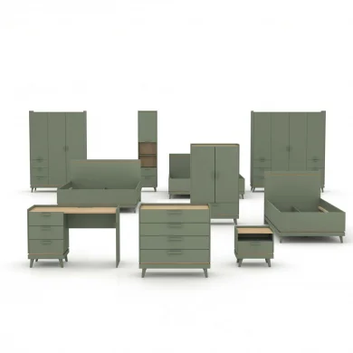 La finitura verde salvia opaca, moderna e raffinata, si abbina con facilità a tonalità neutre e legni naturali, creando un ambiente accogliente e contemporaneo.