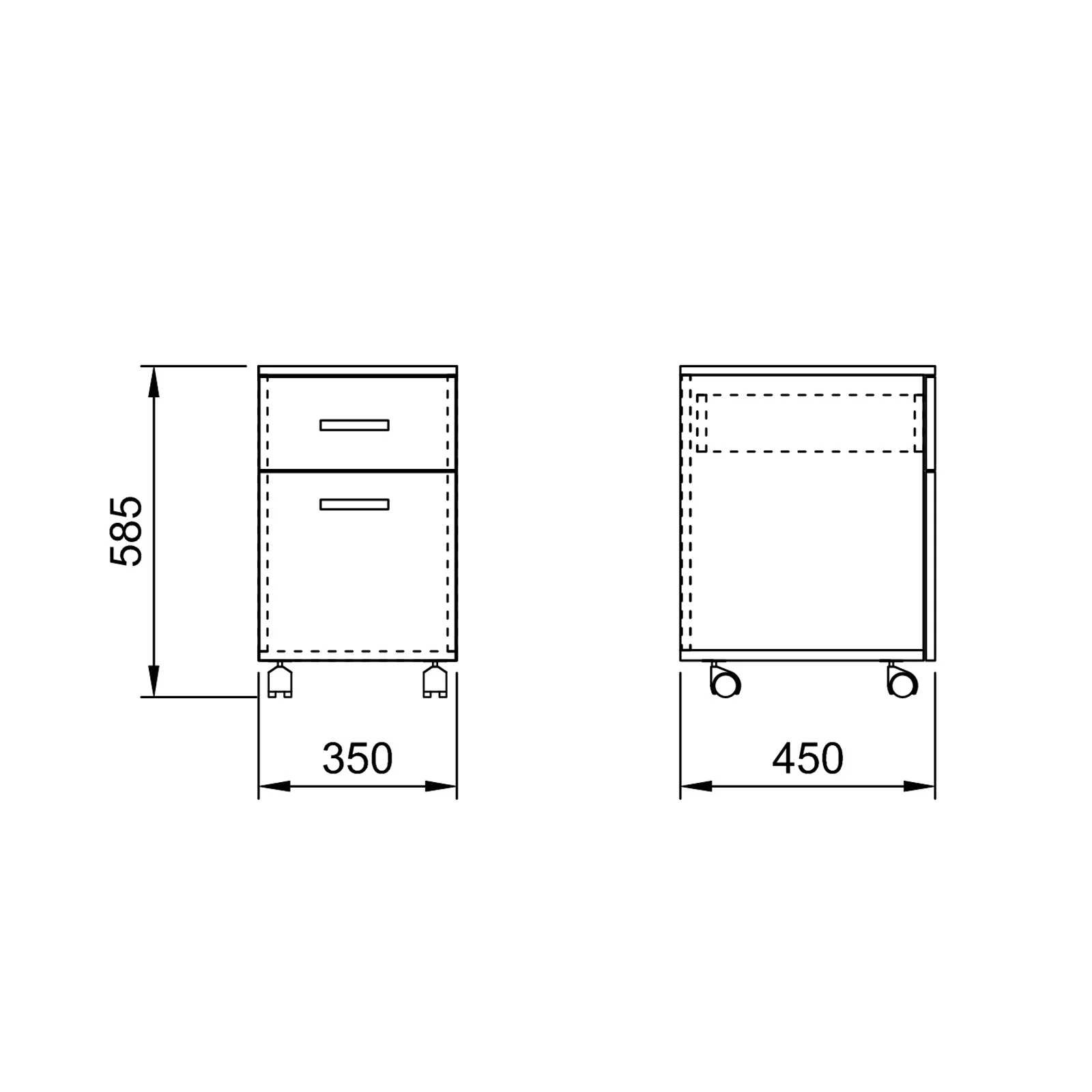 Cassettiera ufficio 35x59h cm reversibile rovere antracite lucido Time O