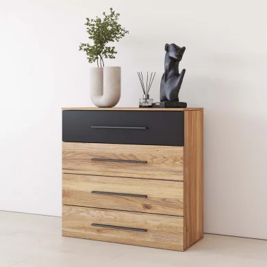 Design moderno, linee pulite e tanto spazio contenitivo: il comò Yve è il complemento ideale per una camera da letto elegante e funzionale. I suoi 4 ampi cassetti scorrono su guide metalliche, offrendo capienza e praticità per organizzare al meglio indumenti e accessori.