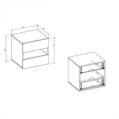 Dotato di 2 cassetti capienti e di un vano a giorno, offre lo spazio giusto per organizzare libri, occhiali e piccoli oggetti, mantenendo tutto a portata di mano. I bordi in ABS, le guide metalliche e i piedini in plastica nera garantiscono stabilità e durata nel tempo.