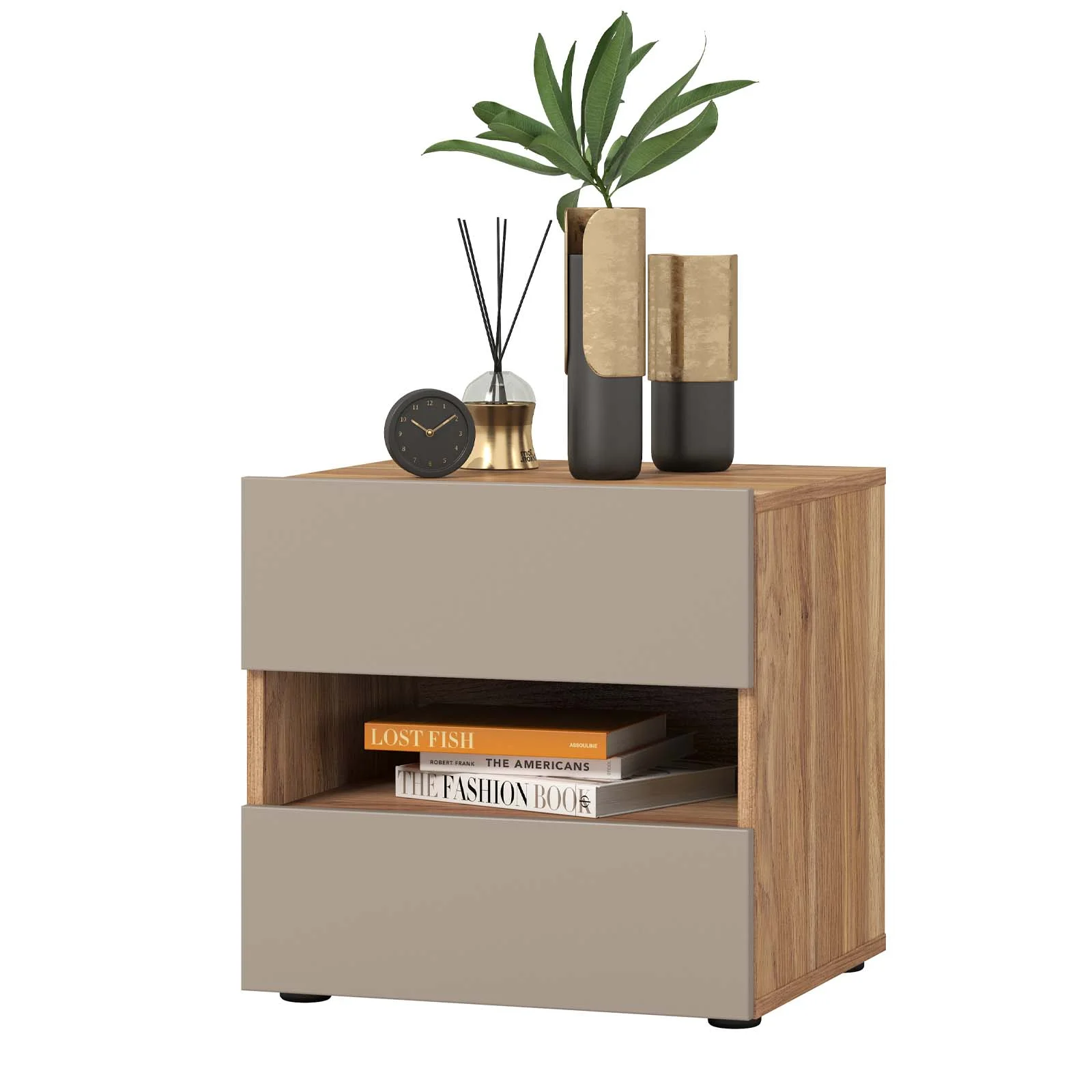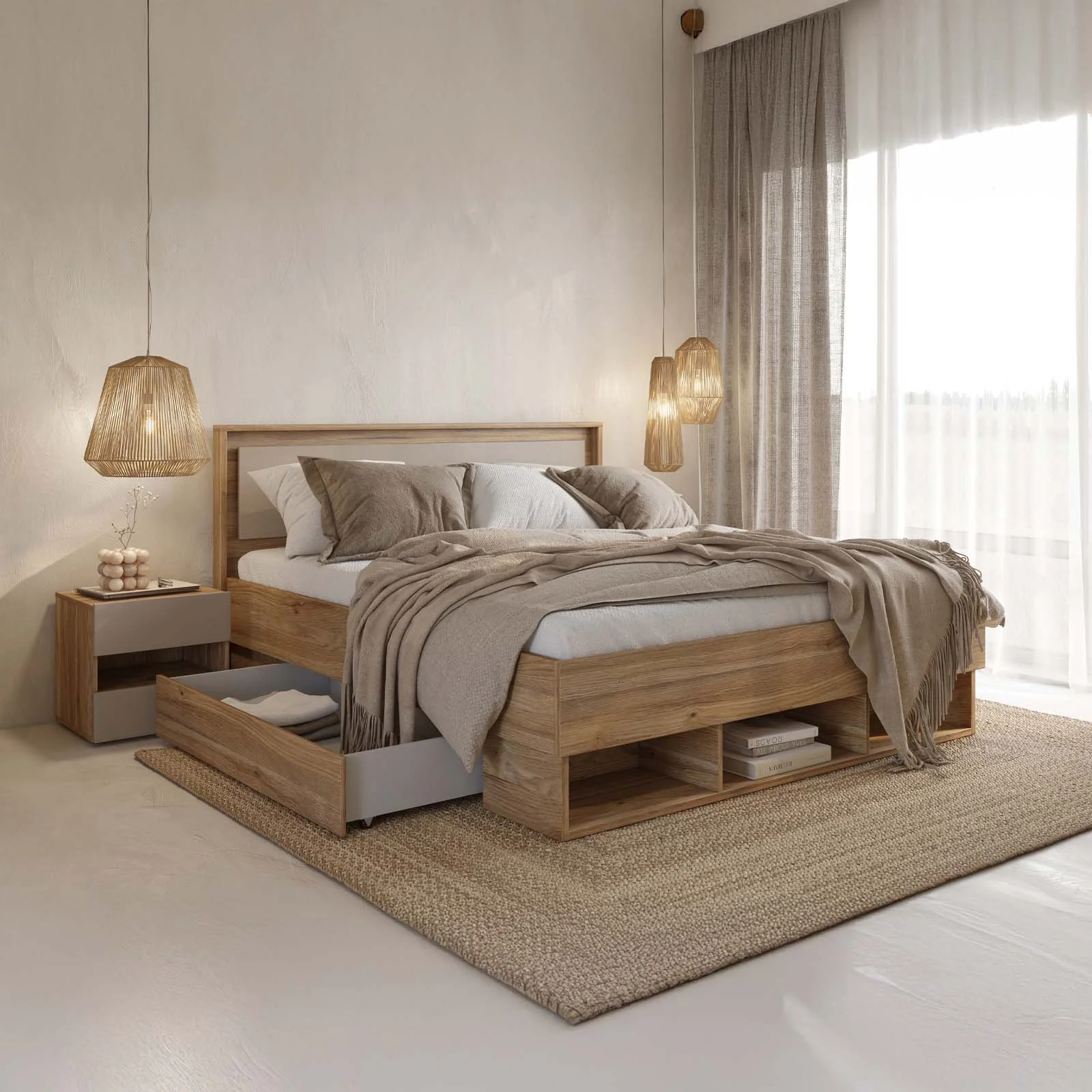 Pratico, moderno e versatile: il comodino Lise è il complemento ideale per dare stile e funzionalità alla tua camera da letto. La combinazione di rovere caldo e tortora elegante crea un contrasto armonioso, perfetto per un ambiente accogliente e contemporaneo.