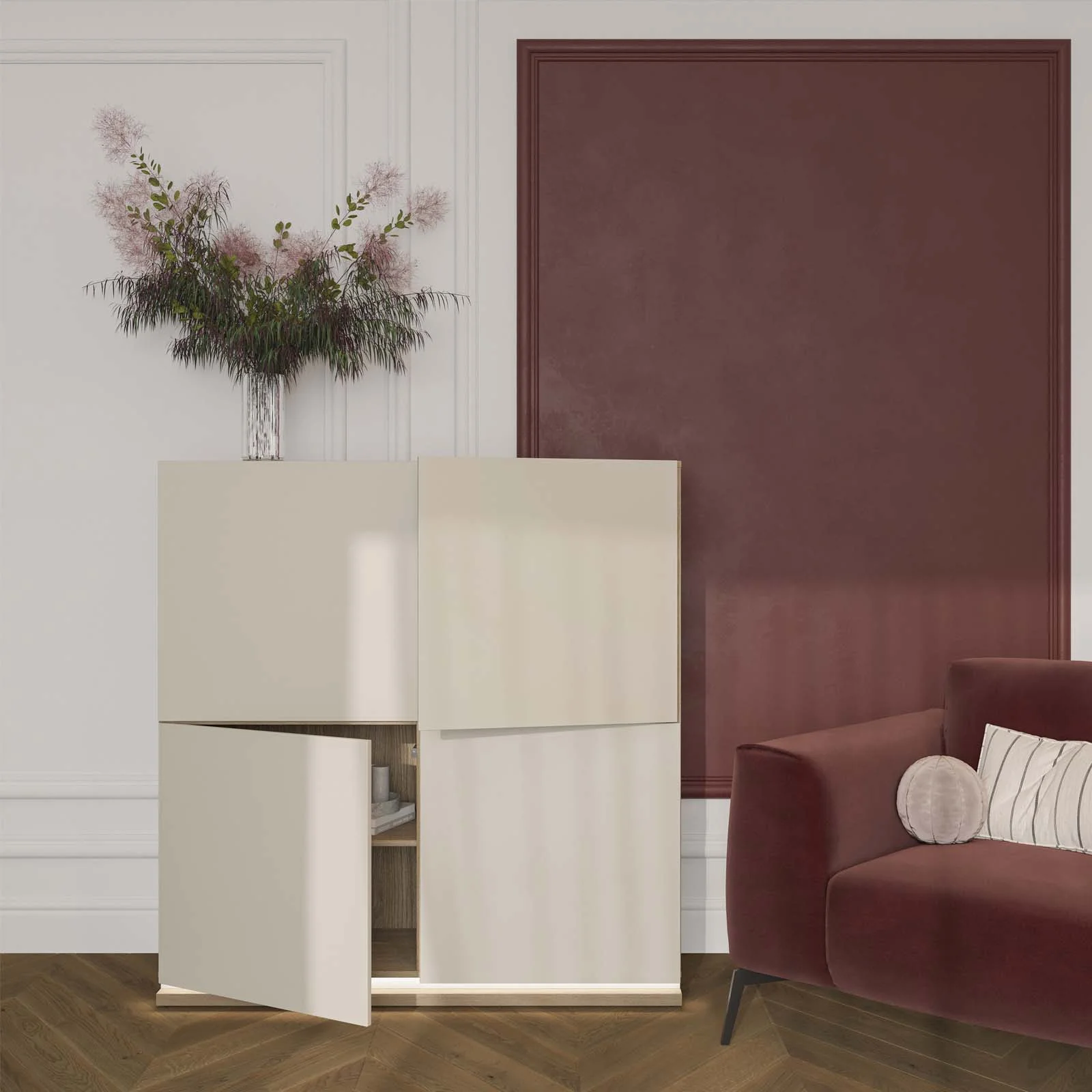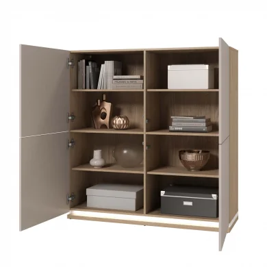 Credenza alta 120x125h cm 4 ante con led beige rovere Lyve La credenza alta della collezione Lyve è l’elemento perfetto per completare il tuo soggiorno con stile, funzionalità ed eleganza... continua a leggere