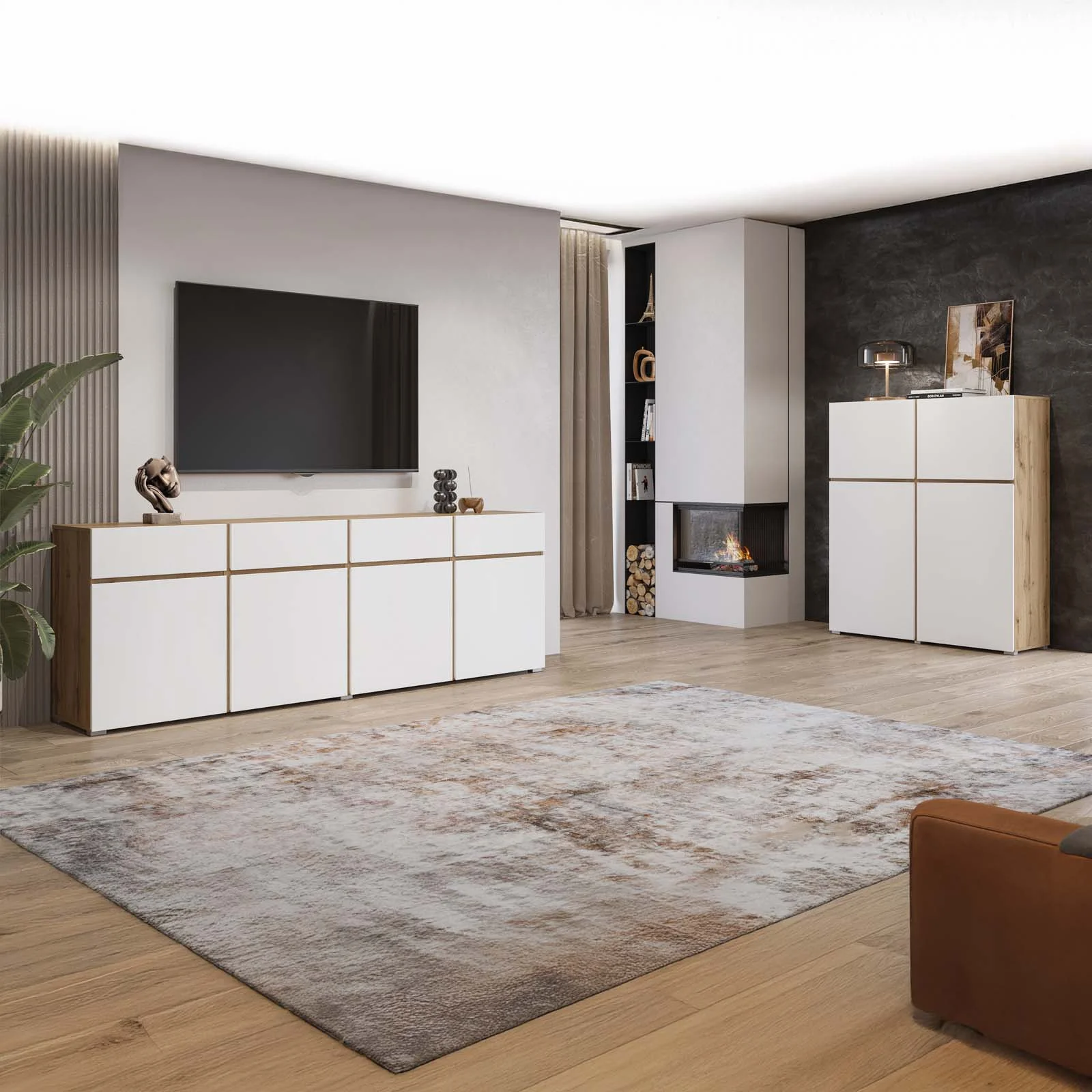 Grazie alla sua altezza, questa credenza sfrutta al meglio lo spazio verticale, rivelandosi ideale anche in ambienti di dimensioni contenute. Un arredo che unisce stile moderno, funzionalità e massima versatilità d’uso, valorizzando con eleganza qualsiasi soggiorno o sala da pranzo.