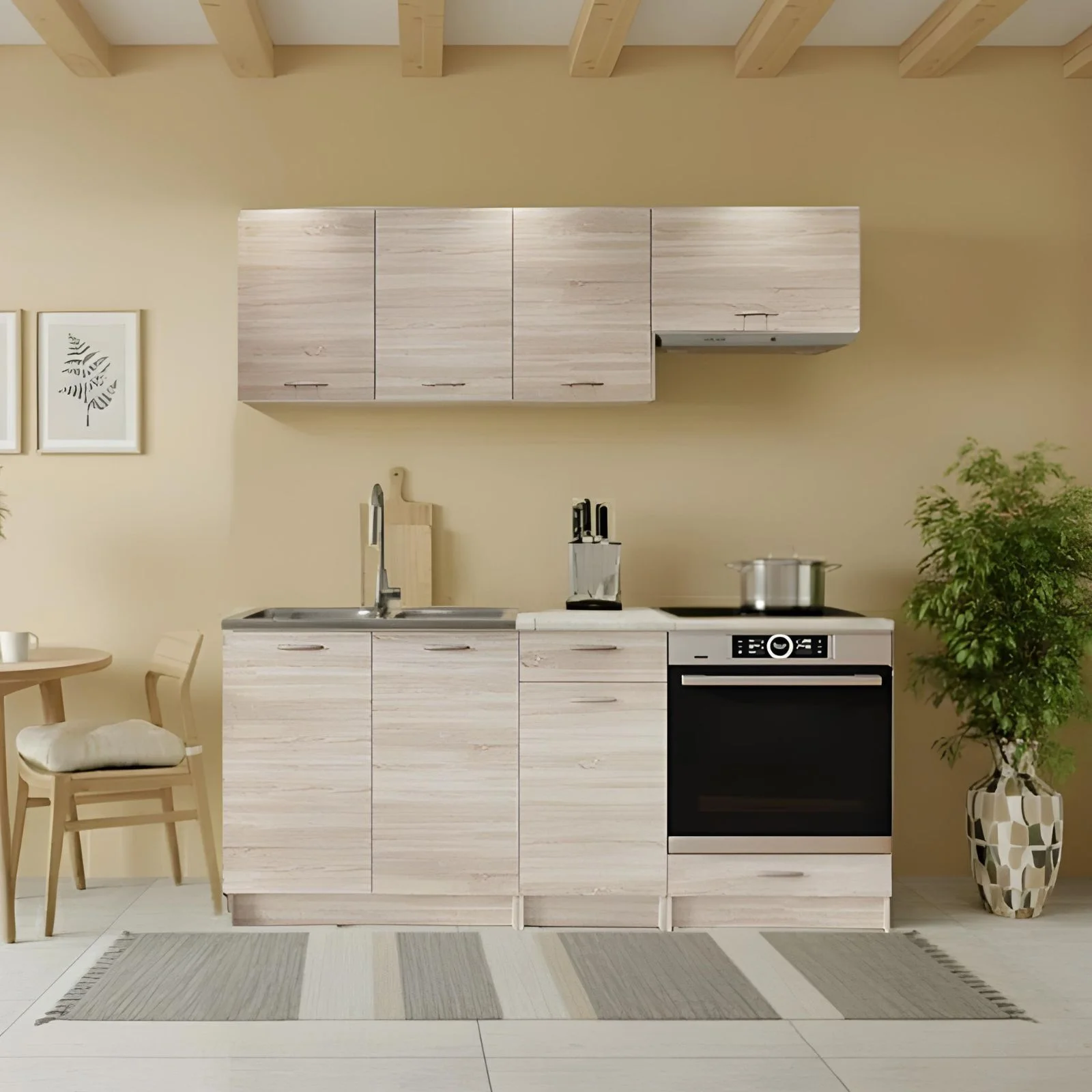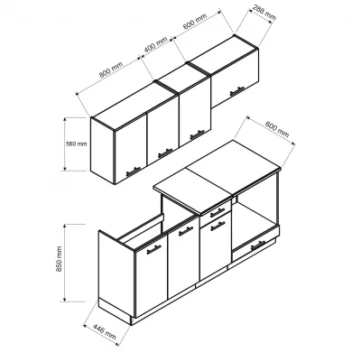 La cucina lineare Dalia si distingue per il suo design contemporaneo e funzionale, pensato per adattarsi con eleganza a qualsiasi ambiente domestico. Compatta ma completa, è la soluzione ideale per chi desidera una cucina pratica, ben organizzata e dal gusto raffinato.