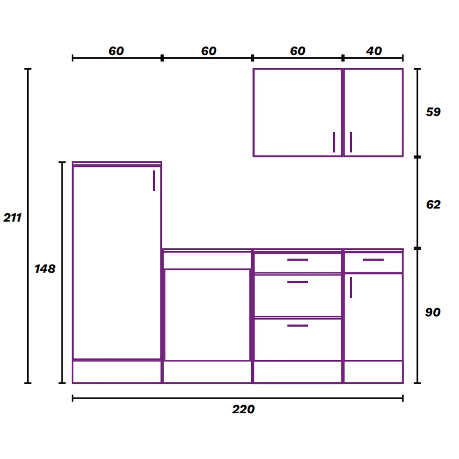 | Dimensioni totali | L.220 x H.211 x P.60 cm |
