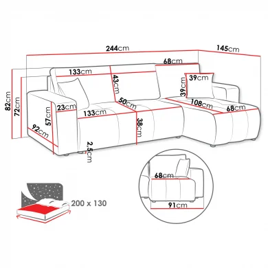 | Dimensioni | L.244 x H.82 x P.145 cm |