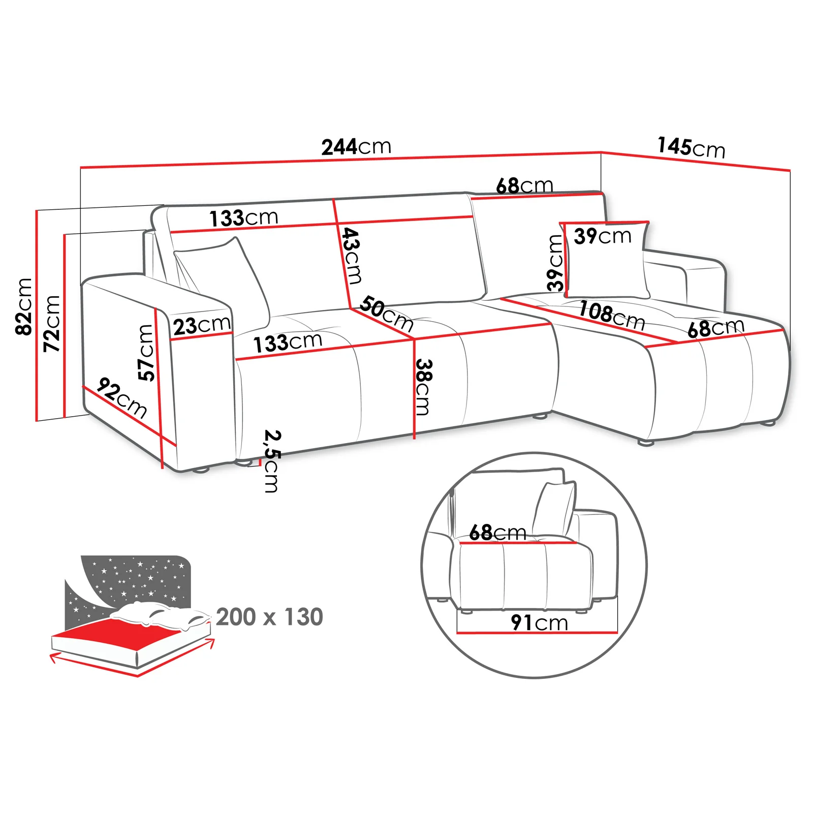 Il divano è dotato di angolo reversibile, per adattarsi perfettamente alla configurazione del tuo soggiorno, sia a destra che a sinistra. Completano il tutto due cuscini coordinati inclusi, per un tocco di comfort e armonia in più. Con il divano letto angolare 3 posti Orama, funzionalità e stile si incontrano per arredare con intelligenza e gusto.