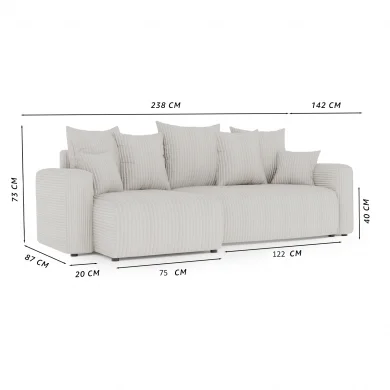 | Dimensioni | L.238 x H.73 x P.142 cm |