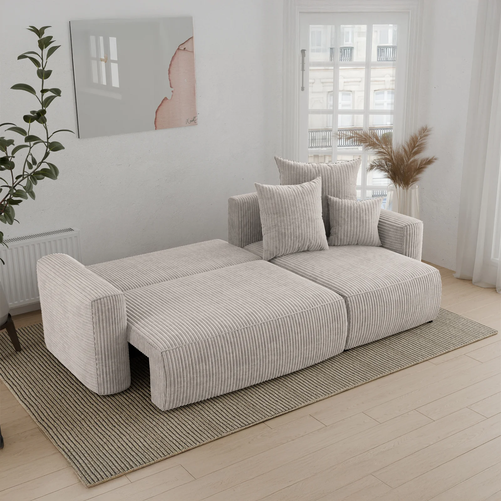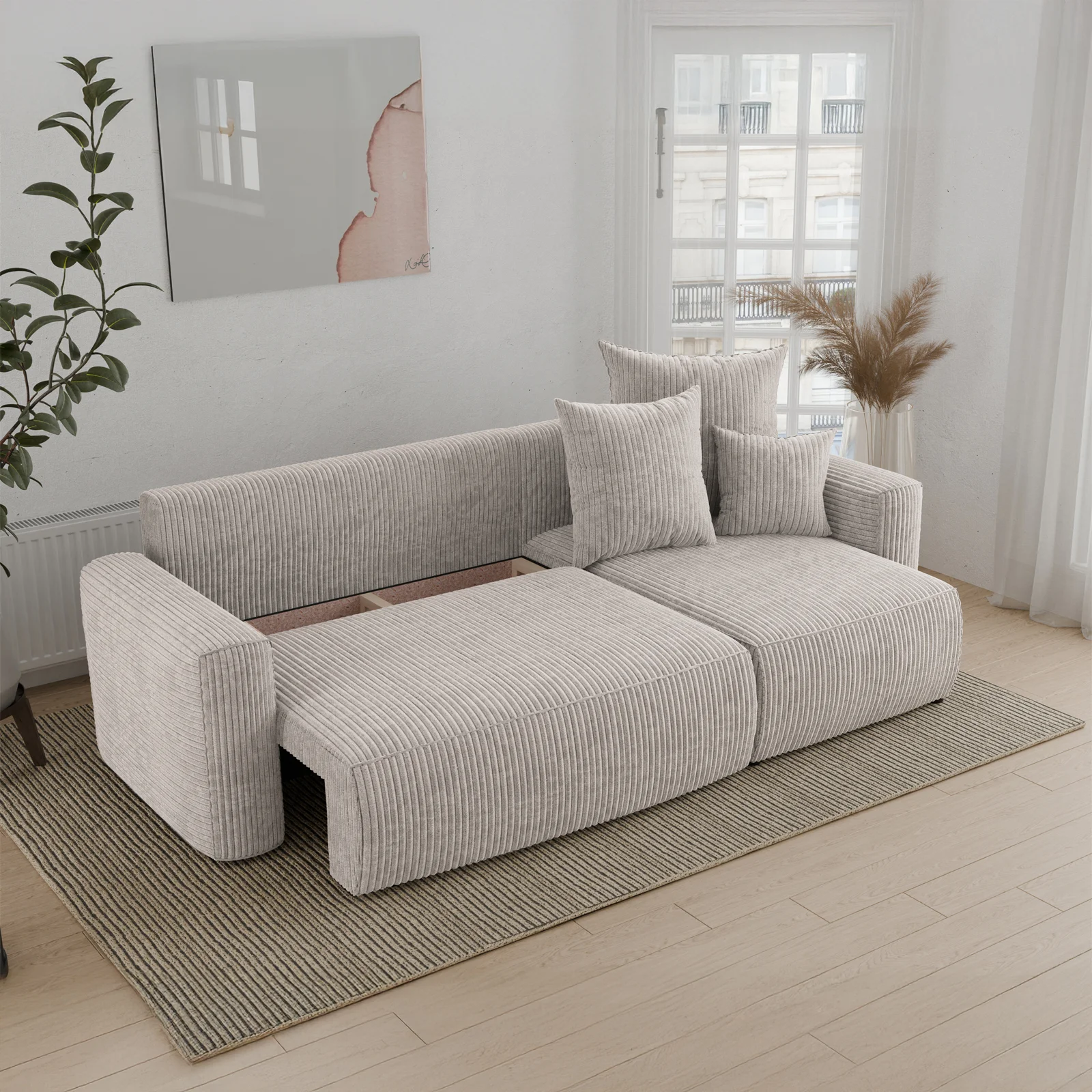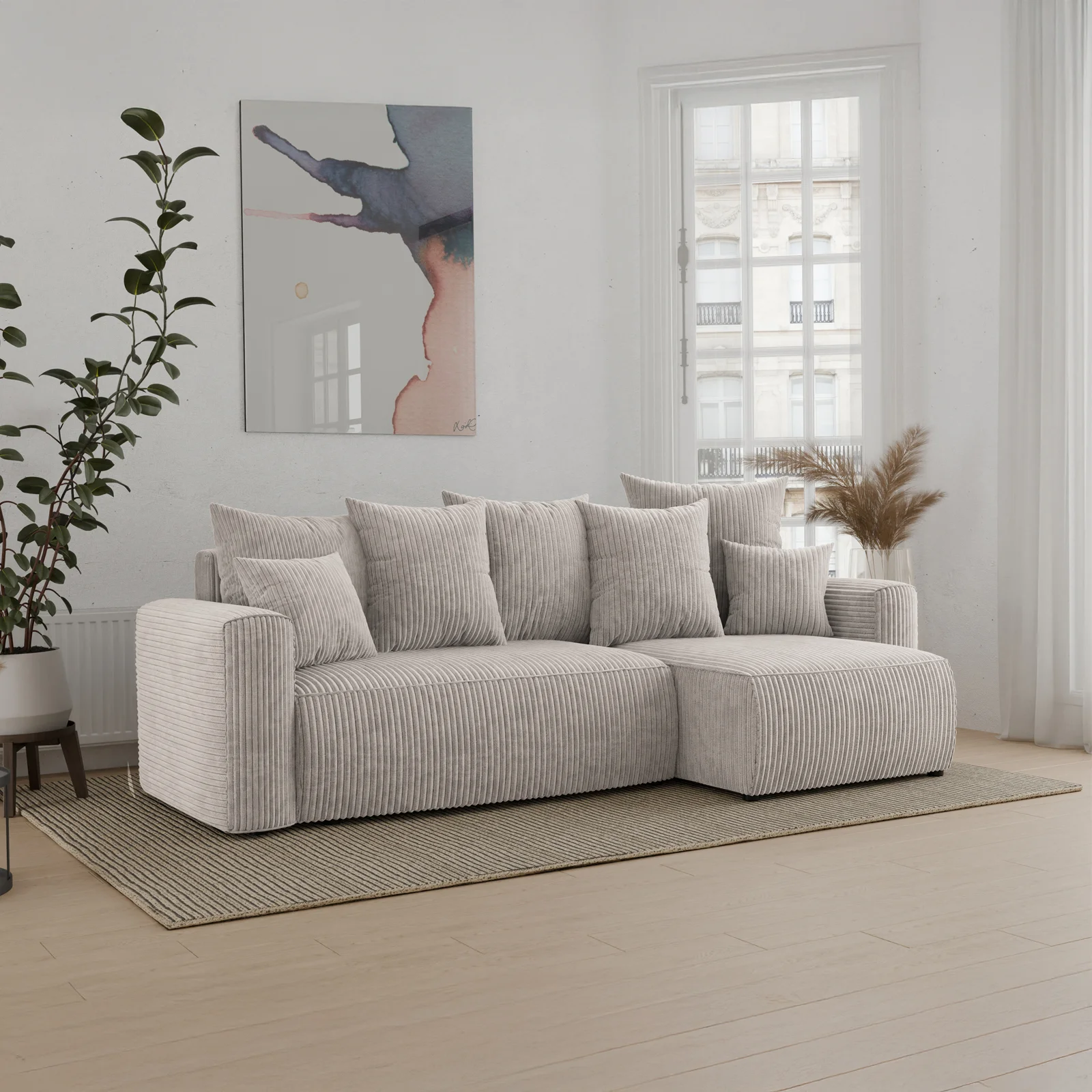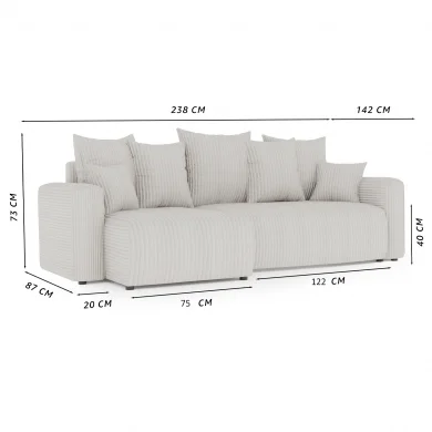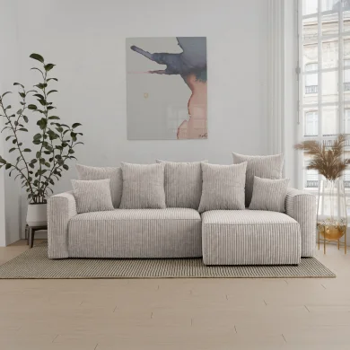 Divano letto angolare reversibile 238x142cm velluto a coste beige Scintilla Il divano letto angolare Scintilla è la perfetta combinazione di comfort, eleganza e praticità. Rivestito in un morbido velluto... continua a leggere