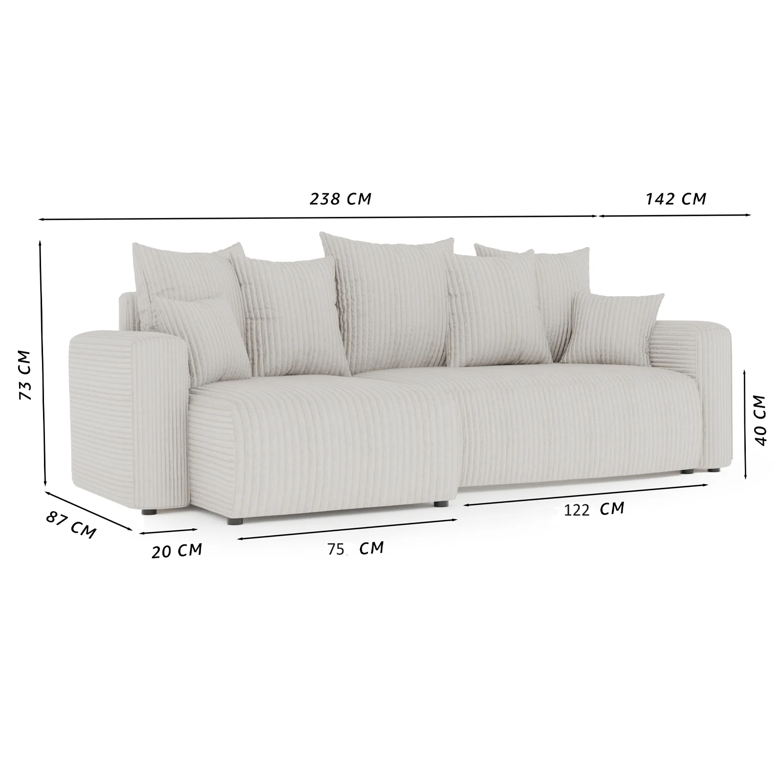 | Dimensioni | L.238 x H.73 x P.142 cm |