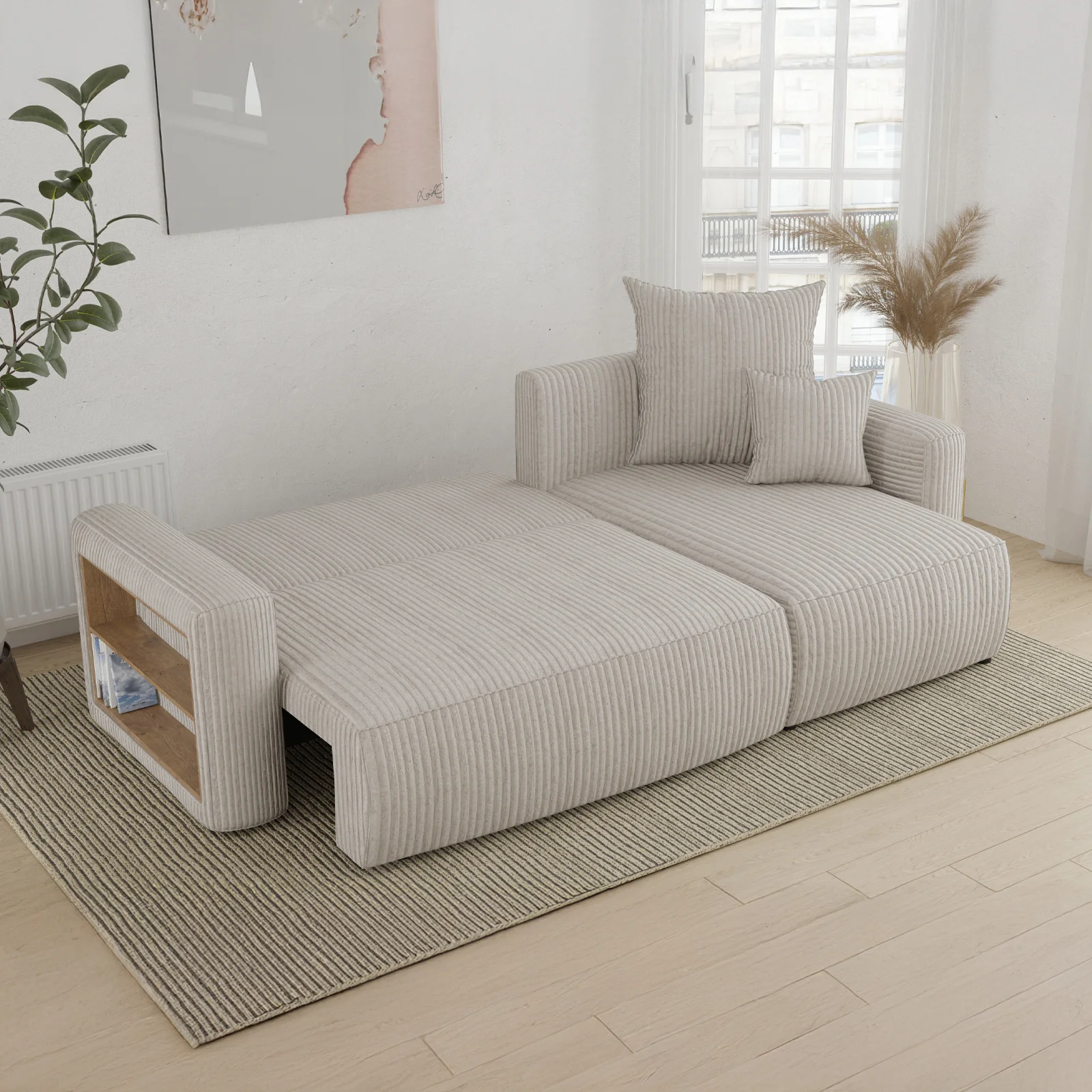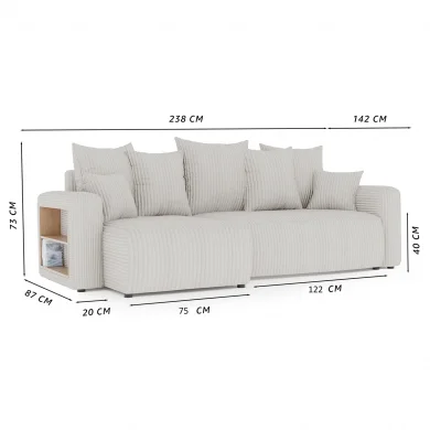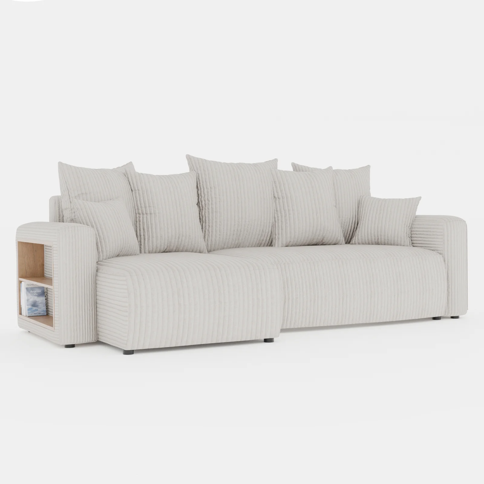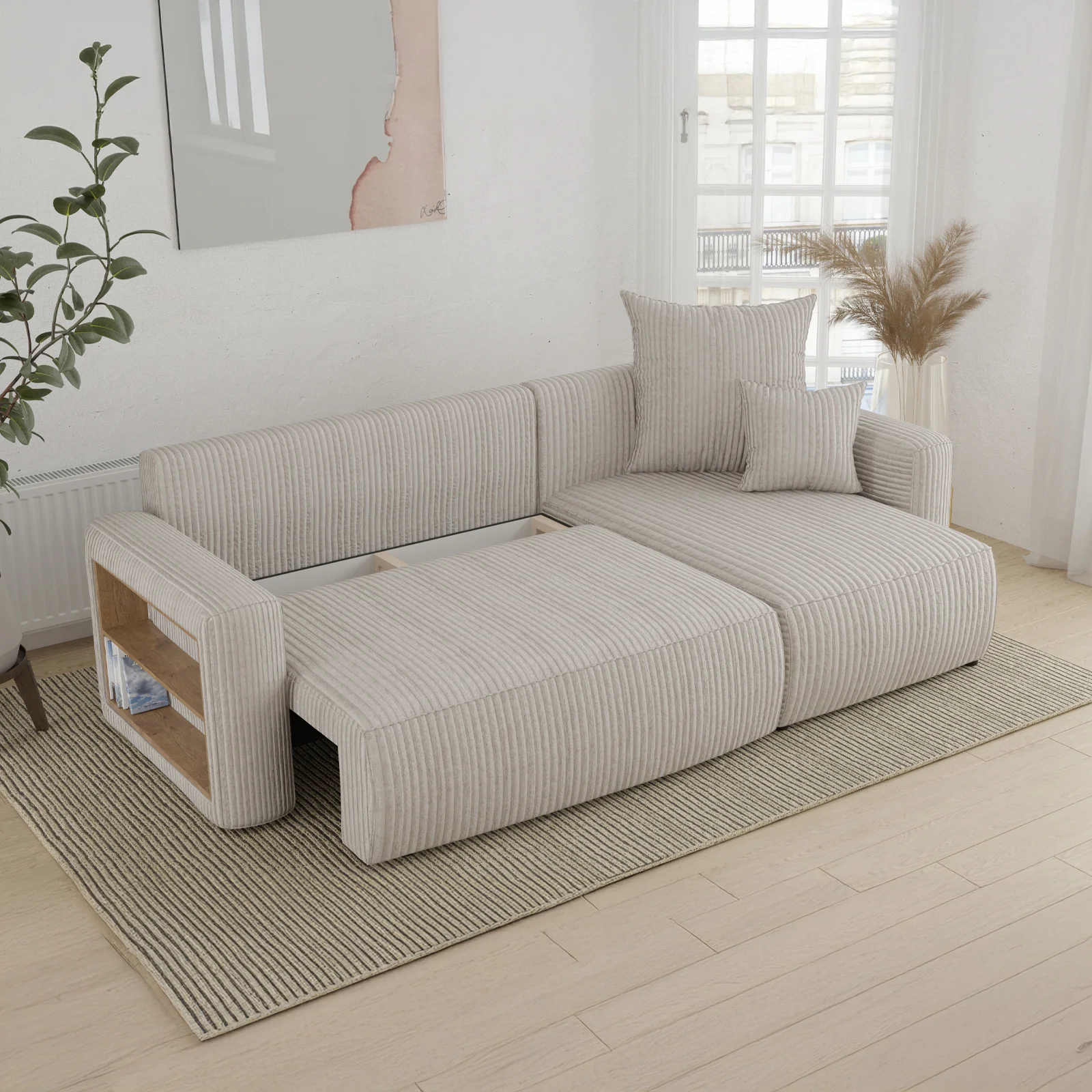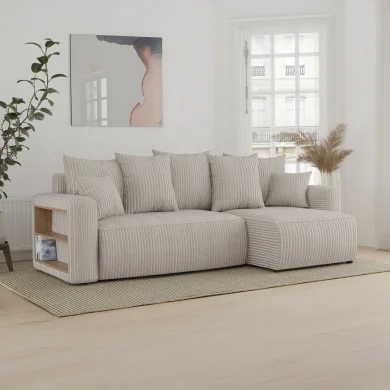 Divano letto angolare reversibile 238x142cm velluto a coste con libreria beige Mistery Il divano letto angolare Mistery combina stile, comfort e funzionalità in un’unica soluzione di design perfetta per... continua a leggere