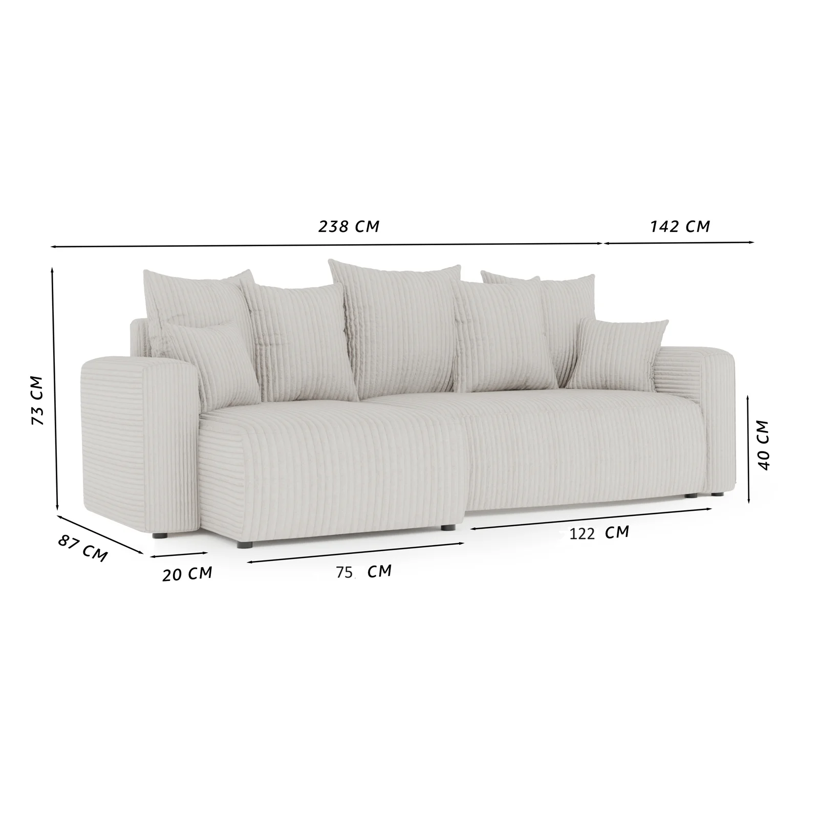 | Dimensioni | L.238 x H.73 x P.142 cm |