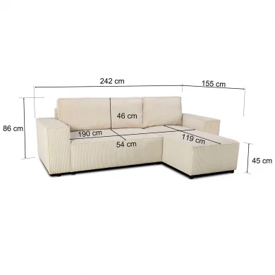 Divano letto angolare reversibile 242x155cm tessuto a coste lincoln beige Angels Il divano letto angolare Angels è la scelta ideale per chi desidera unire stile, praticità e comfort in un unico arredo... continua a leggere