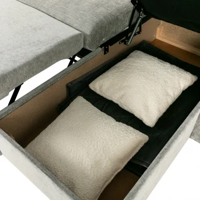 Non sai dove riporre cuscini e coperte? Nessun problema! Arturo pensa anche a questo, infatti ti offre un pratico box contenitore perfetto per le tue necessità.