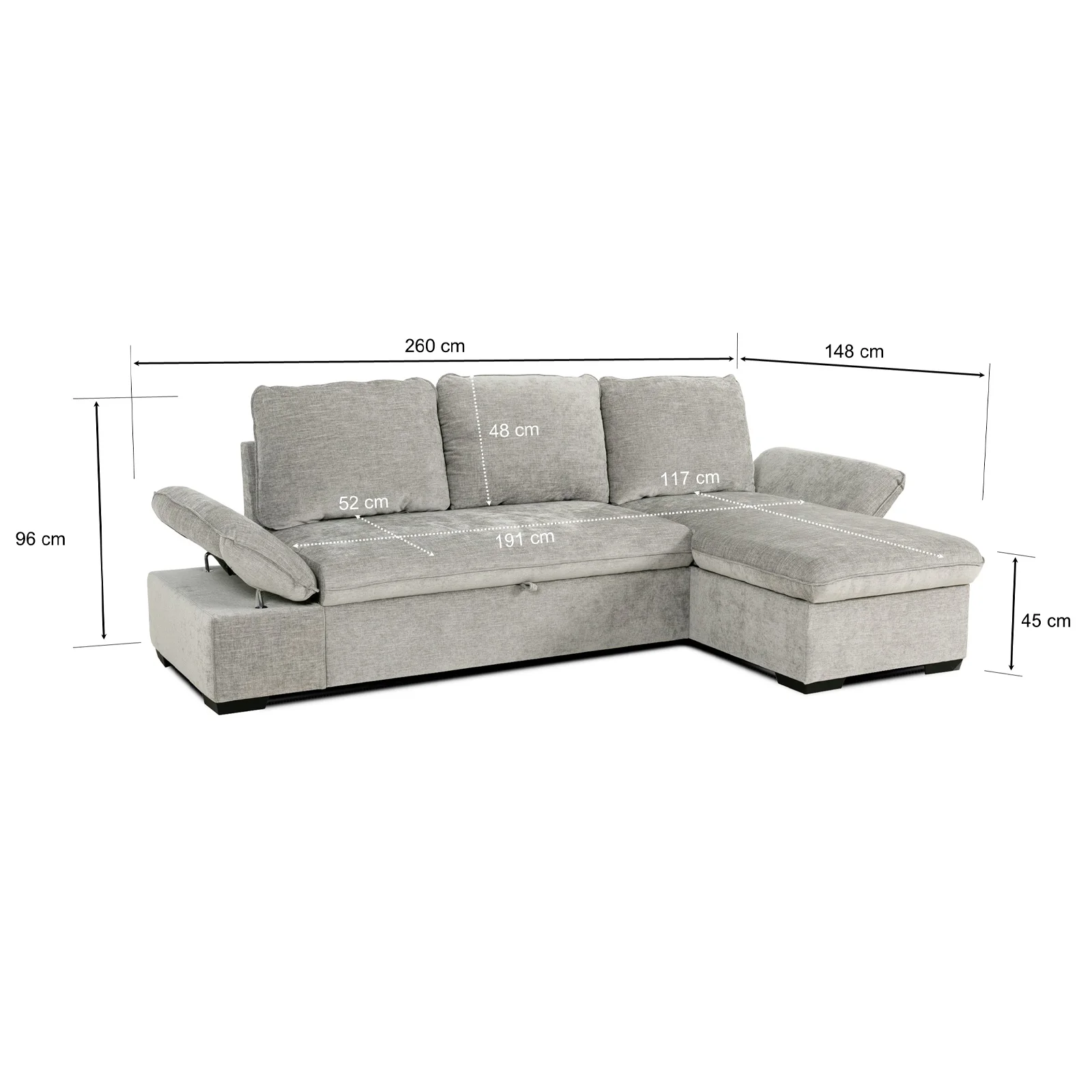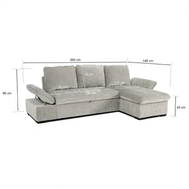 Divano letto angolare reversibile 260x148cm con vano contenitore tessuto boston grigio Arturo Il divano è un elemento indispensabile da avere nella propria abitazione. Esso ti permette di prenderti un momento... continua a leggere