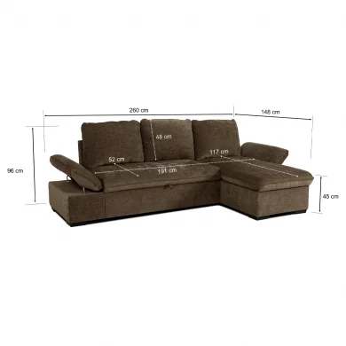 Divano letto angolare reversibile 260x148cm con vano contenitore tessuto boston marrone Arturo Il divano è un elemento indispensabile da avere nella propria abitazione. Esso ti permette di prenderti un momento... continua a leggere