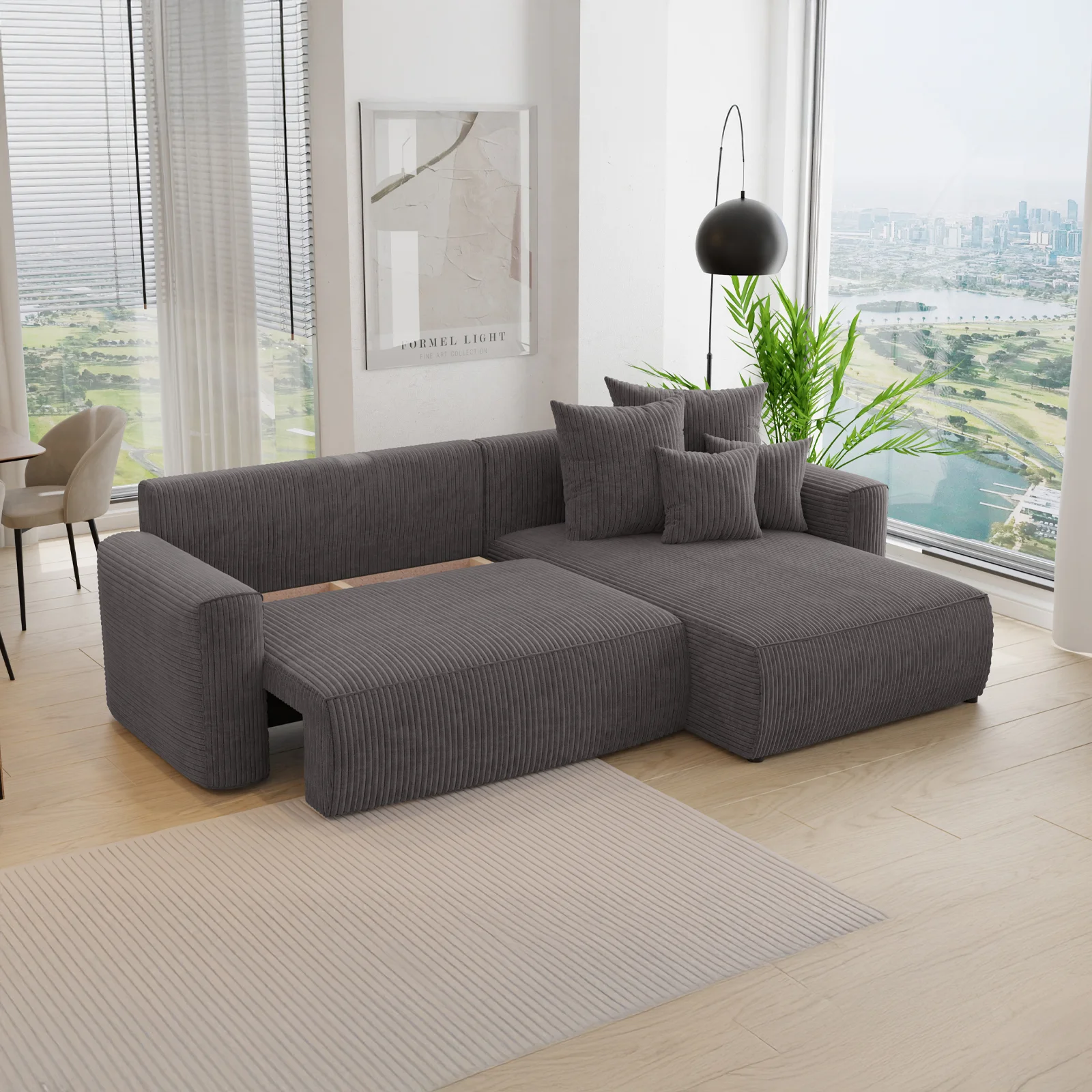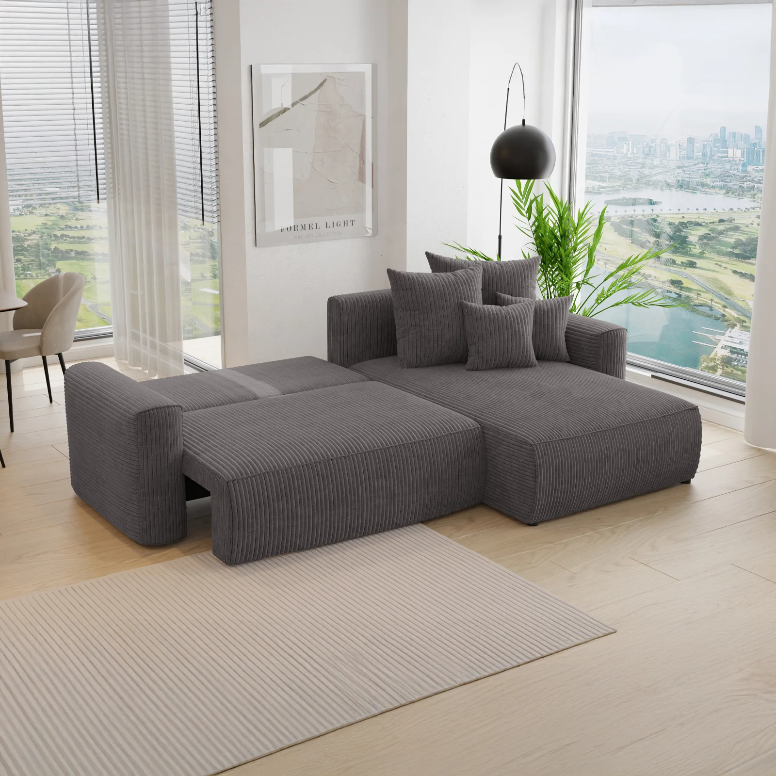 Divano letto angolare reversibile 260x160cm velluto a coste antracite Scintilla Il divano letto angolare Scintilla è una soluzione d’arredo elegante e funzionale, pensata per chi desidera unire stile e... continua a leggere