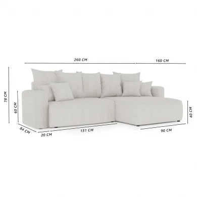 Il divano letto angolare Scintilla è una soluzione d’arredo elegante e funzionale, pensata per chi desidera unire stile e praticità in un unico complemento. Rivestito in un velluto a coste morbido e resistente, dona calore e personalità all’ambiente, diventando il protagonista del soggiorno. Scintilla è perfetto per spitare fino a 4 persone.