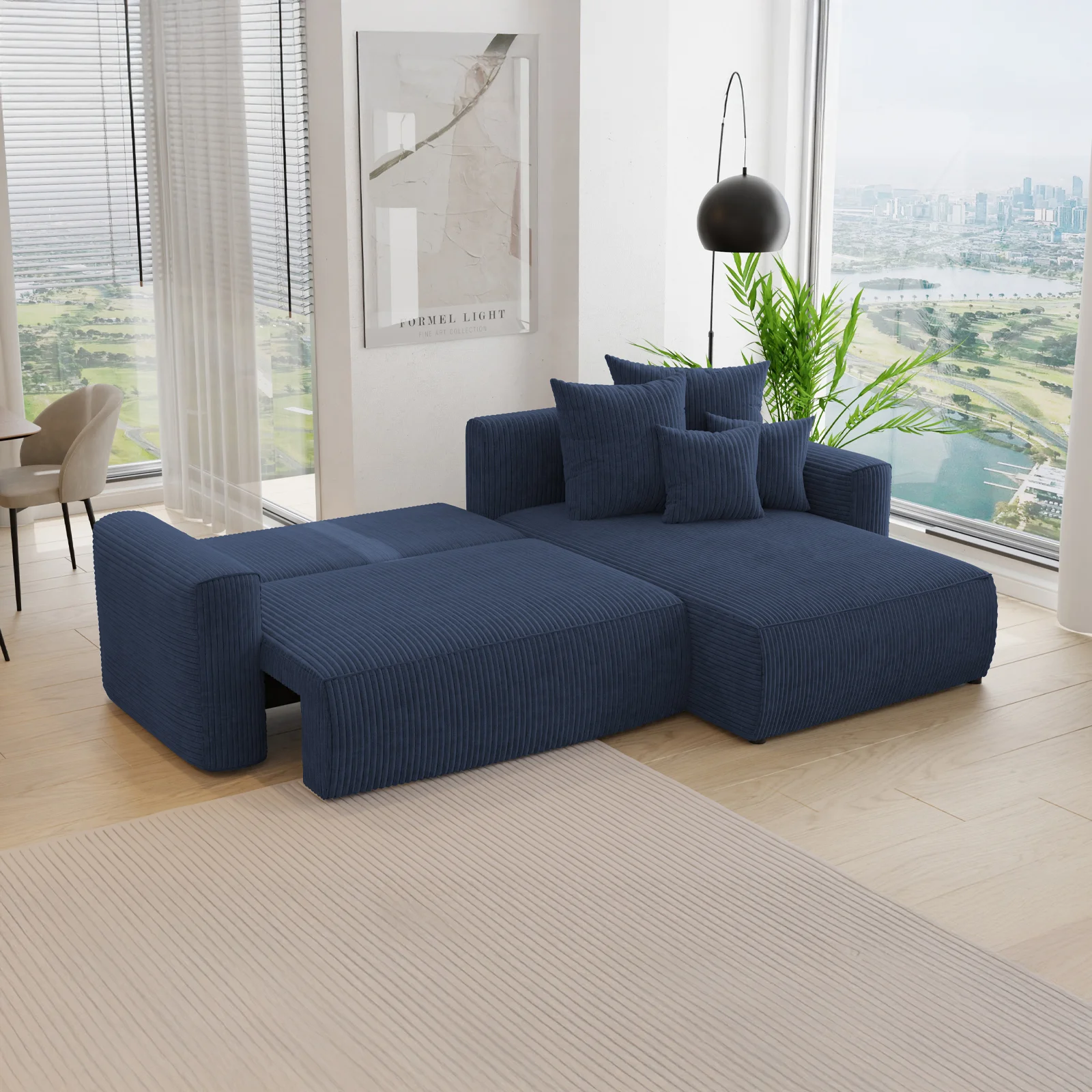 Divano letto angolare reversibile 260x160cm velluto a coste blu Scintilla Il divano letto angolare Scintilla è una soluzione d’arredo elegante e funzionale, pensata per chi desidera unire stile e... continua a leggere